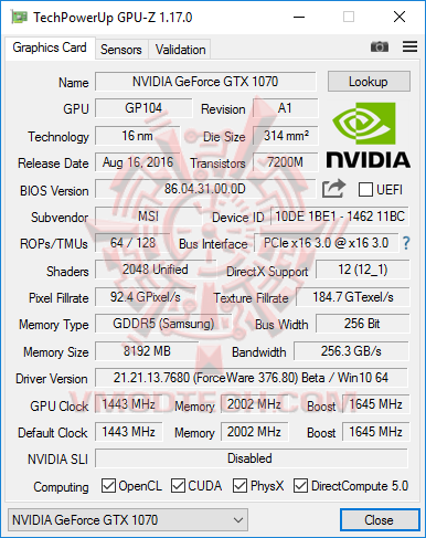 ตัวกราฟฟิกการ์ดจะเป็น Nvidia GeForce GTX 1070 ที่มีแรม GDDR5 ติดตั้งมาให้ 8GB ตามมาตรฐาน
