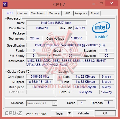 CPU นั้นได้เลือกติดตั้ง Intel Core i7 4720HQ ที่มี 4 คอร์ 8 เธรด มีแคช L3 ขนาด 6 เมกกะไบท์เลยทีเดียว