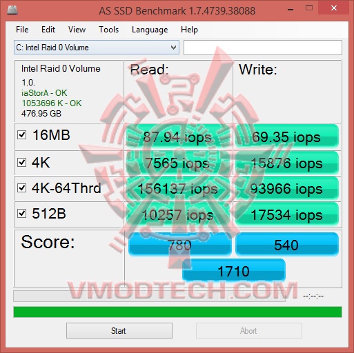 AS SSD Benchmark of Primary Disk (SSD Raid0 x4)