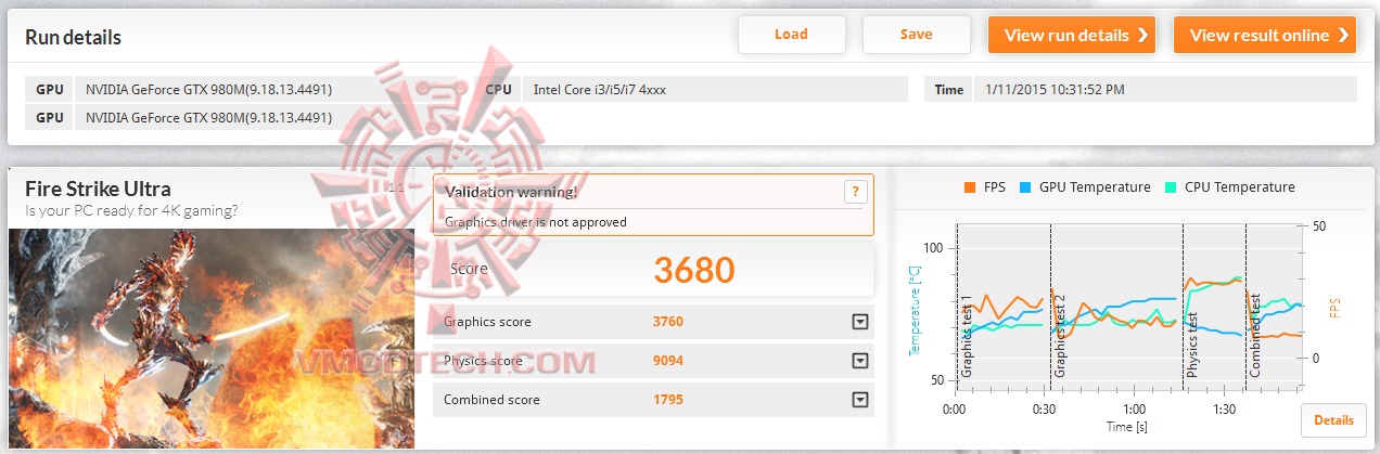 มาถึงหน้าที่หลักของ MSI GT80 TITAN SLI ผลงานของ GPU GeForce GTX 980M SLI นั้นค่อนข้องดีบน Vantage ที่เห็นเหมือนคะแนนไม่พุ่งเท่าไหร่นั้นก็เนื่องจาก CPU นะครับ
