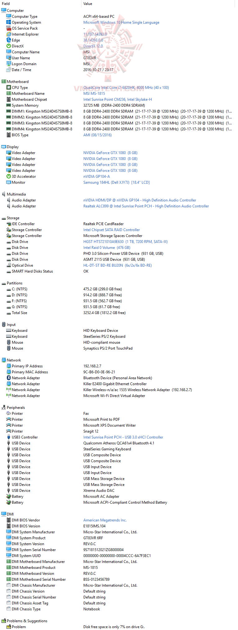 D.SSD ที่ติดตั้งนั้นจะเป็นแบบ M.2 PCIe ที่คอนฟิกมาแบบ Raid0 ความจุ 476GB HDD ที่ติดตั้งมานั้นมีความจุ 1 TB แบบ 7200 รอบต่อนาที