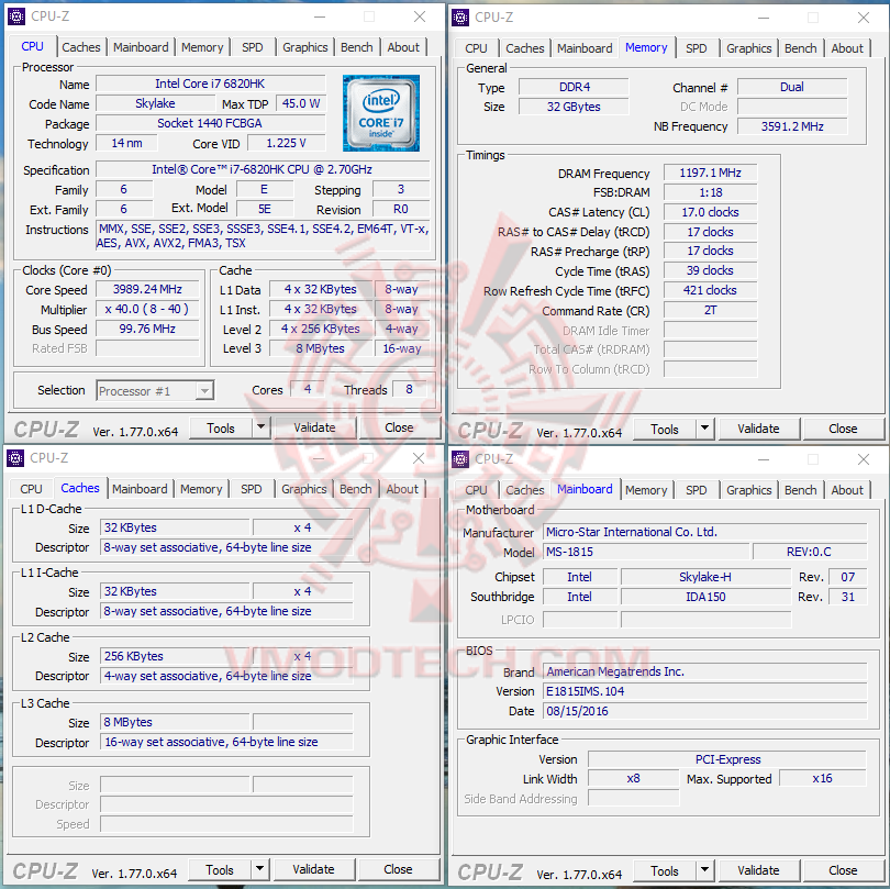CPU ที่ใช้จะเป็นตัวยอดนิยมครับคือ Intel Core i7 6820HK Skylake 4 Core 8 Thread มีแรมแบบ DDR4 มาให้ 4 แถวขนาด 8 กิ๊กกะไบท์ต่อแถว รวม 32 GB ทำงานแบบ Dual Channel