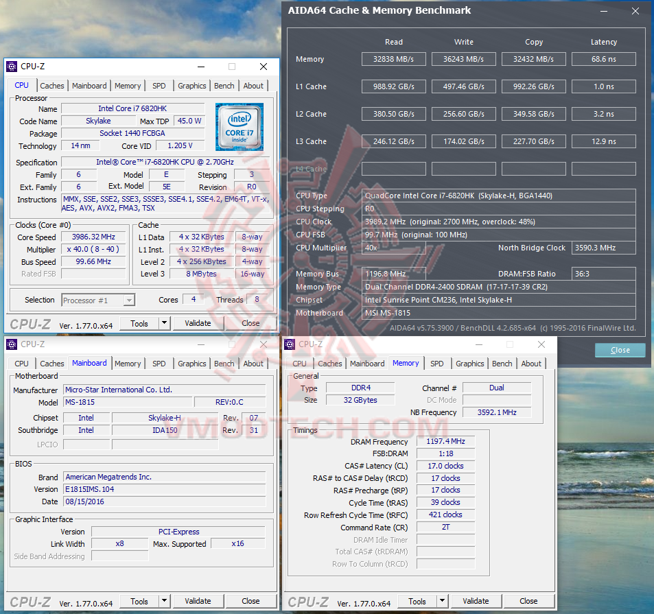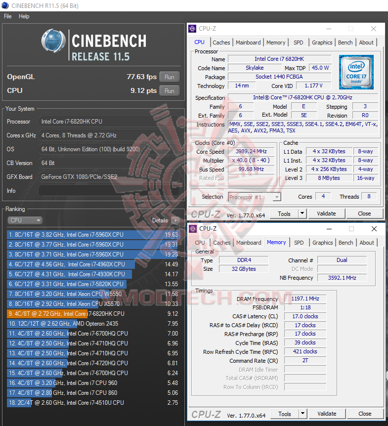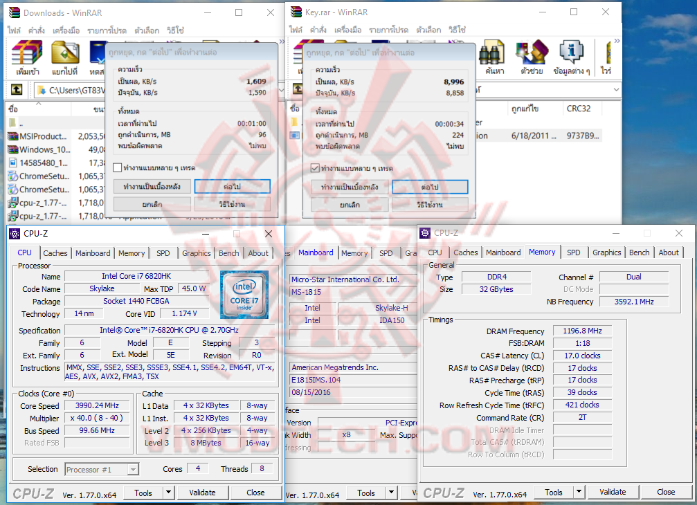 CPU ที่ใช้จะเป็นตัวยอดนิยมครับคือ Intel Core i7 6820HK Skylake 4 Core 8 Thread มีแรมแบบ DDR4 มาให้ 4 แถวขนาด 8 กิ๊กกะไบท์ต่อแถว รวม 32 GB ทำงานแบบ Dual Channel