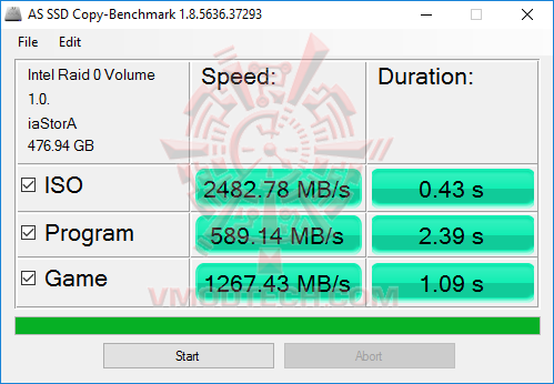 SSD ที่คือนฟิกมาแบบ Raid0 ด้วย M.2 PCIe ครับ ความจุรวม 476GB ความแรงนั้นเหลือเฟือ ความเร็วในการอ่าน/เขียนเกินสองพันห้าไปเยอะเลย