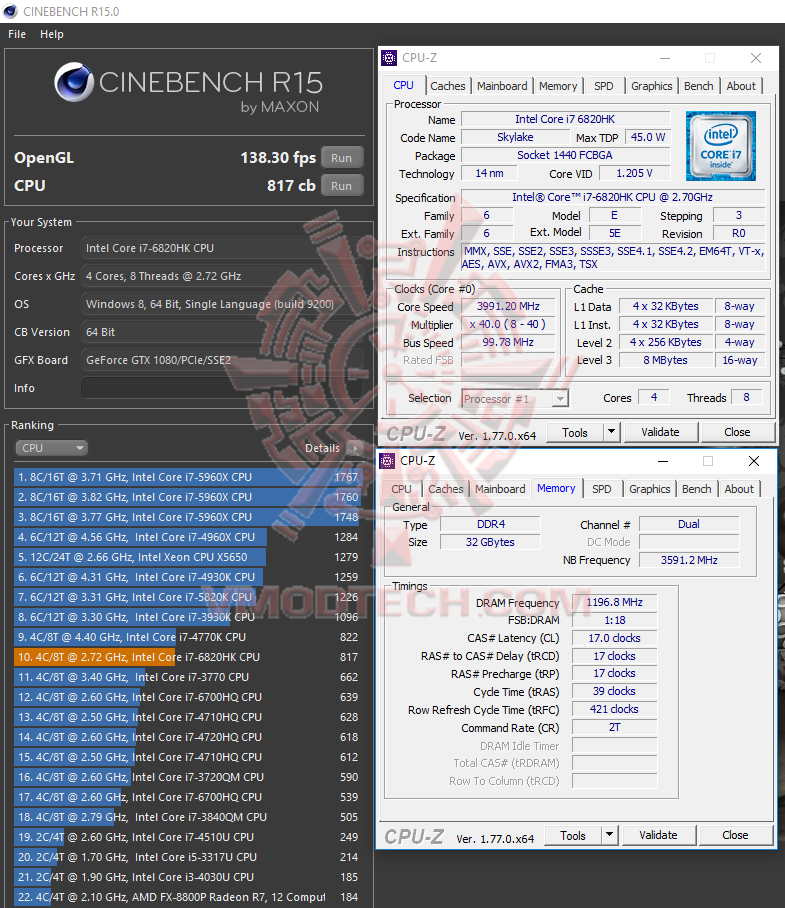 - Intel® Core™ i7 SKYLAKE 6820HK 4 Core / 8 Thread