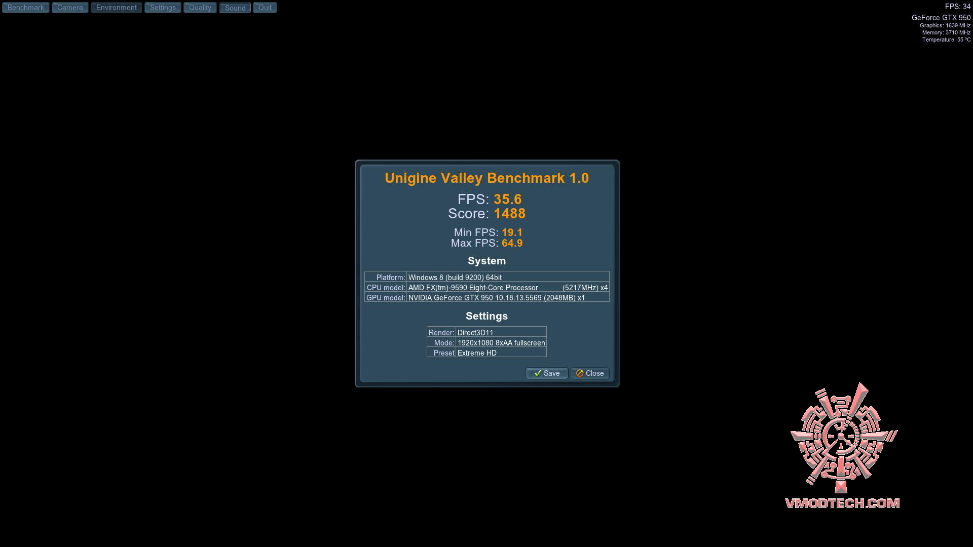 Unigine Valley 1.0 เฟรมเรตอยู่ที่ 35.6เฟรมเรตครับ