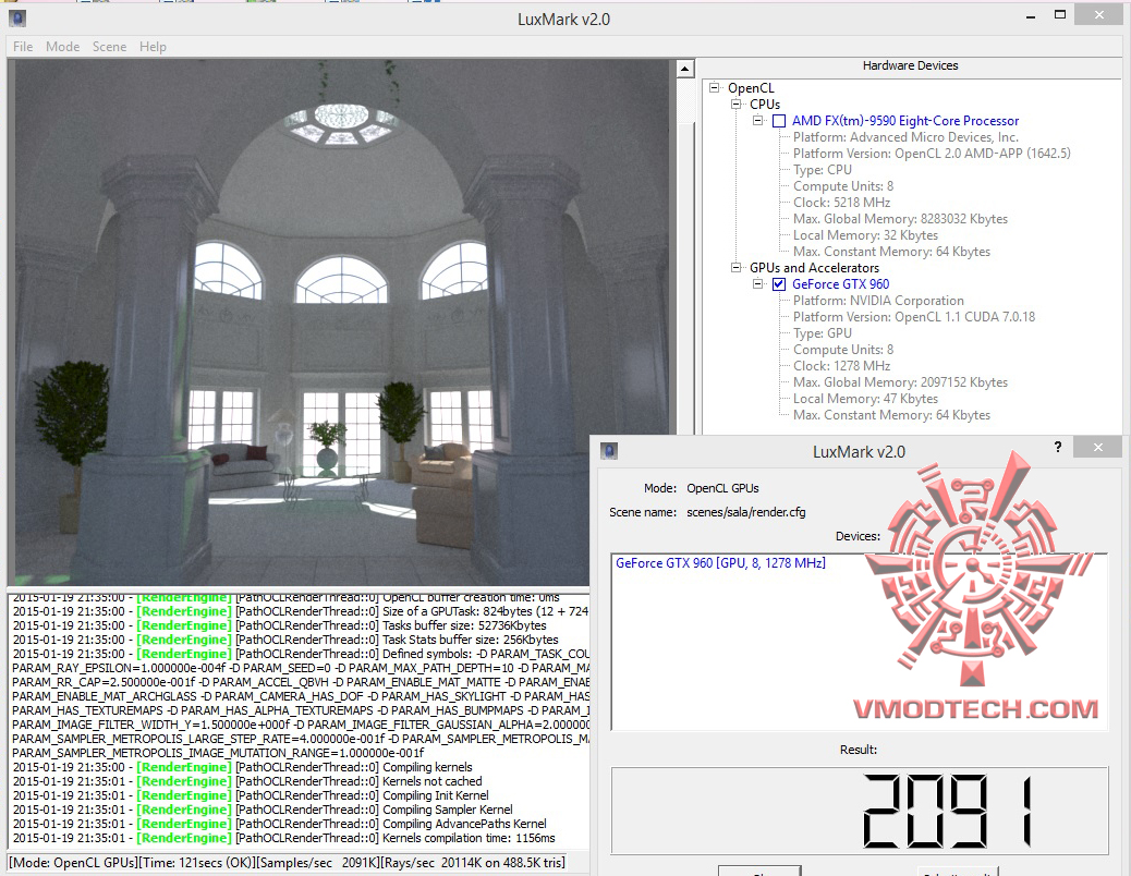 LuxMark โปรแกรมเทสด้าน Open CL ก็แรงเลยครับอยู่ที่ 2091ะแนน ดูเป็นแนวทางกันนะครับ การ์ดเขียวไม่ได้เน้น CL เท่าใดนักนะครับ