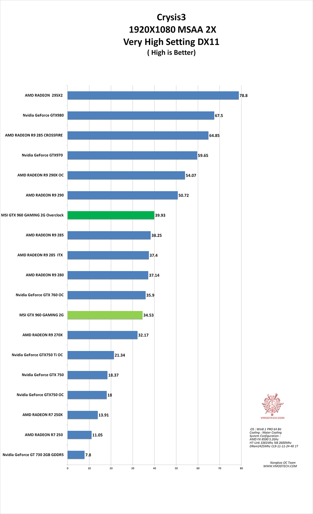 Crysis3 ในระดับ Very High 2X MSAA ทำเฟรมเรตได้ 39ฟรมเรต แรงได้ลื่นดีครับ