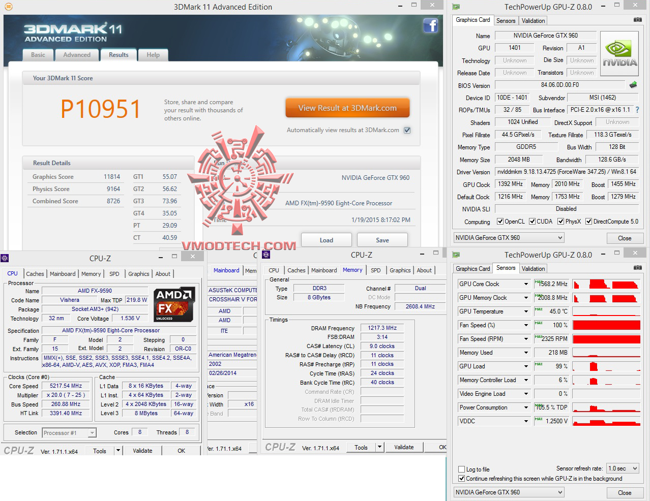 3DMark11 ก็อัดกันไปที่ 10951คะแนนครับ ทะลุหมื่นแบบง่ายๆเกือบแตะหมื่นเอ็ดกันเลยทีเดียวกับซีพียู AMD FX-9590