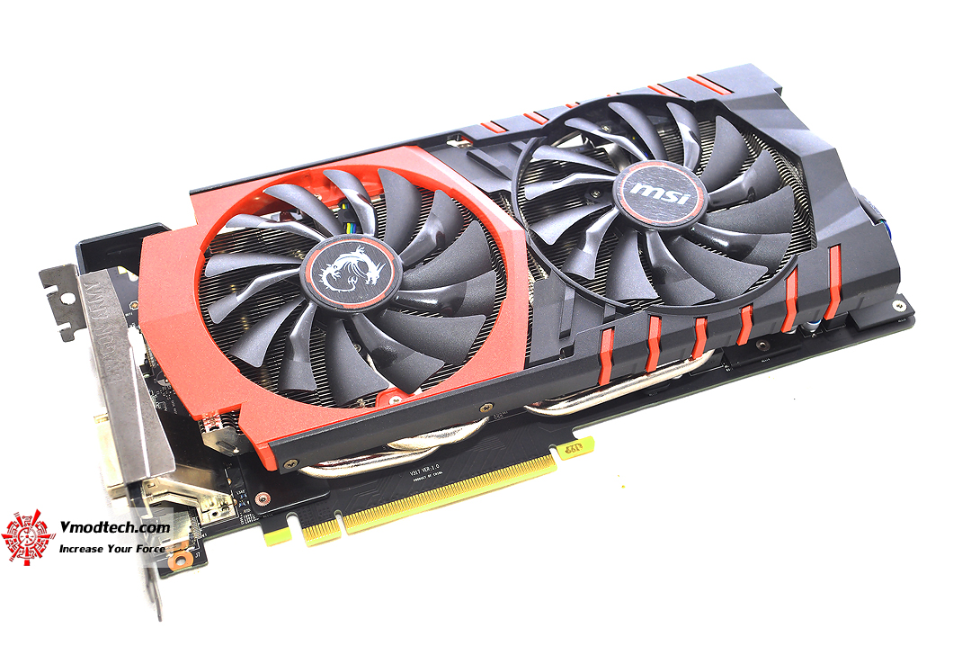 สวัสดีครับ ทุกๆท่านที่เยี่ยมชมเว็บไซต์ Vmodtech.com วันนี้เรามาชมรีวิวกราฟฟิกการ์ดของทางค่าย NVIDIA กันครับ ช่วงนี้ถ้าเป็นค่าย Nvidia ก็จะเป็นในส่วนของการ์ดจอรุ่นท๊อปสุดที่พกพาความแรงมาเยือน Vmodtech.com ของเราไม่ขาดสาย ซึ่งในวันนี้มากันในยี่ห้อ MSI ที่อัดแน่นด้วยคุณภาพอีกแบรนด์มากันในชื่อรุ่น MSI GTX 980 GAMING 4G ที่เป็นซีรี่ย์ Gaming ของทาง MSI ที่เราคุ้นเคยกันดี โดยในรุ่นนี้พกพาความแรงกันมาแบบเต็มพิกัดเพราะเป็นรุ่น OC นั่นเองครับ โดย MSI GTX 980 GAMING 4G นั้นจะมีฟีเจอร์เด่นๆก็คือระบบระบายความร้อนใหม่ล่าสุดอย่าง Twin Frozr V ที่ทำหน้าที่ระบายความร้อนอย่างมีปรสิทธิภาพรวมไปถึงความเงียบที่ทำได้อย่างยอดเยี่ยมรวมไปถึงการประหยัดพลังงานที่เรียกได้ว่าแรงเต็มพิกัดแต่กินไฟต่ำกว่าพิกัดจริงๆ อีกทั้งยังมีฟีเจอร์ MSI Gaming App ไว้ให้เลือกดหมดการทำงานที่เหมาะสมกับการใช้งานอีกด้วย 3ระดับคือ OC Mode 1216MHz Core (Boost Clock:1317MHz) , Gaming Mode 1190MHz Core (Boost Clock:1291MHz) , Silent Mode 1127MHz Core (Boost Clock:1216MHz) และแน่นอนครับว่า MSI GTX 980 GAMING 4G นั้นอยู่ในมาตรฐาน Military Class 4 เช่นเดิมครับกับวัสดุเกรดเยี่ยมเหมือนเช่นเคย เดียวเรามาชมผลทดสอบกันครับว่าจะแรงมากน้อยแค่ไหน ก่อนไปชมผลทดสอบเราไปชมรายละเอียดจากทางเว็บไซต์กันก่อนครับ