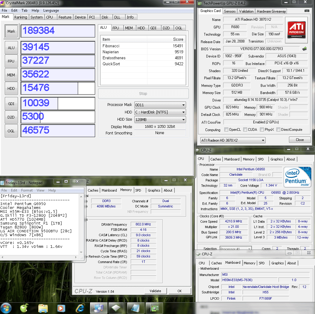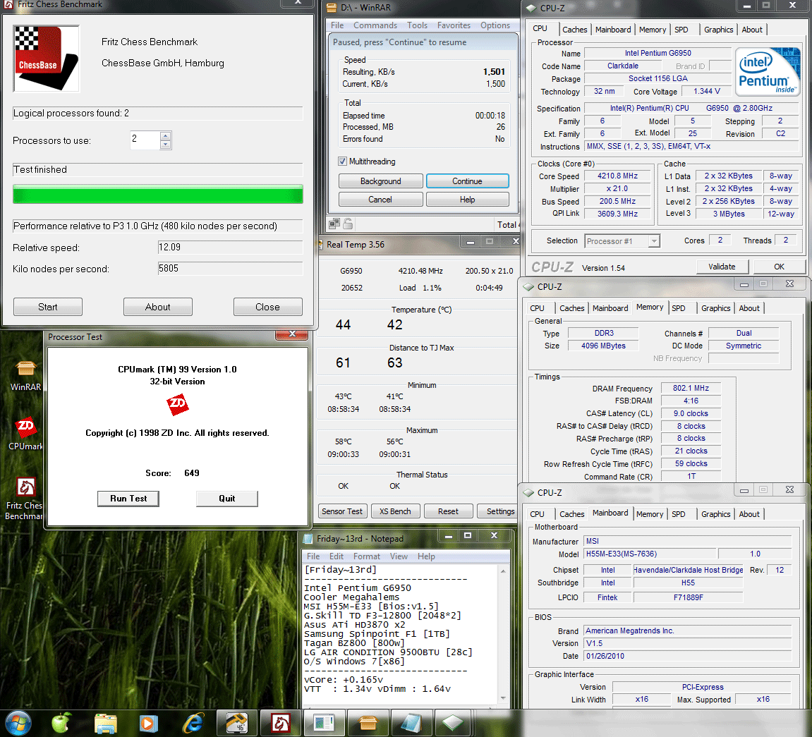 Fritz Chess, WinRAR, CPUMark 99 & CrystalMark 2004R3