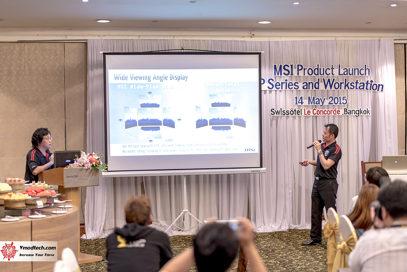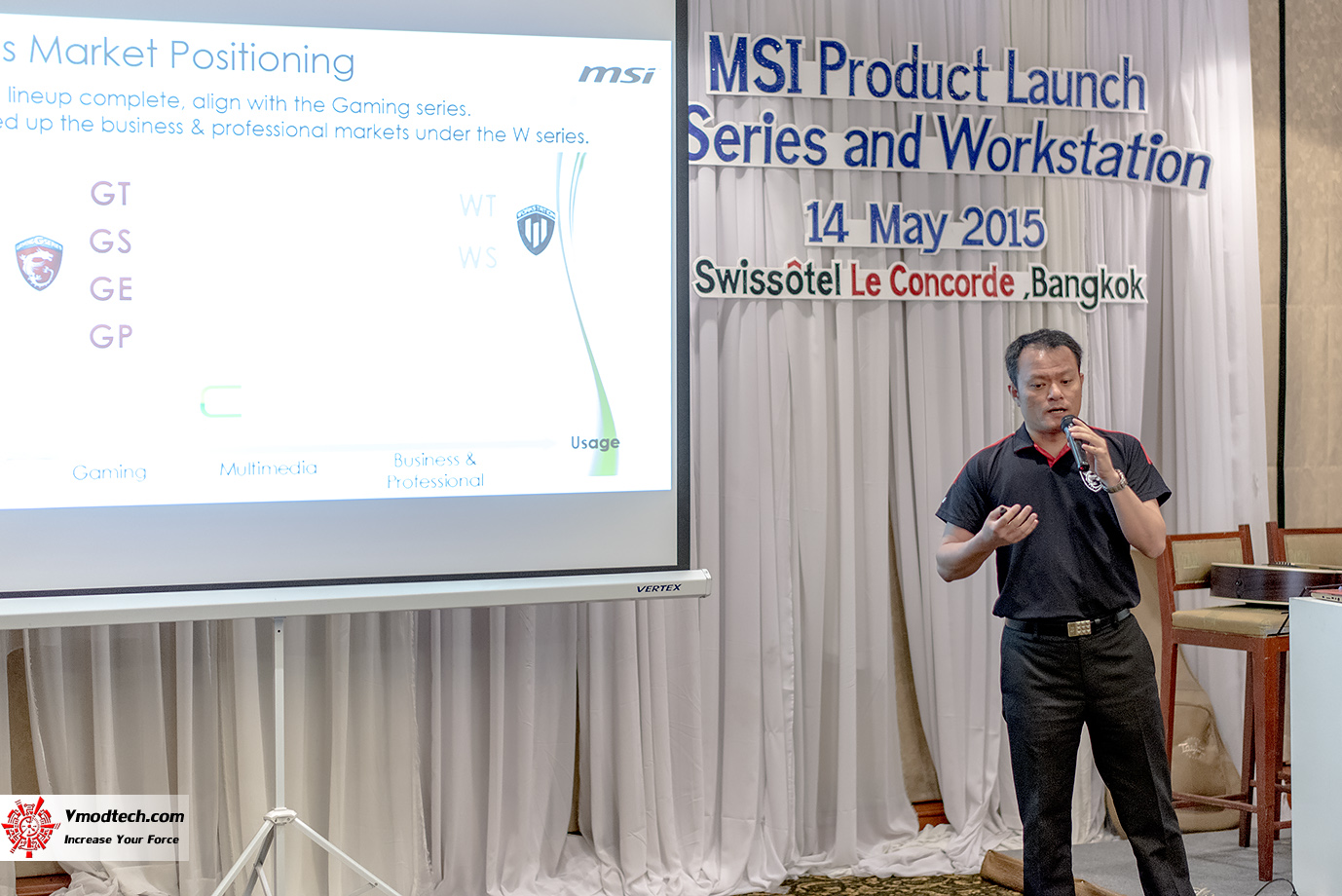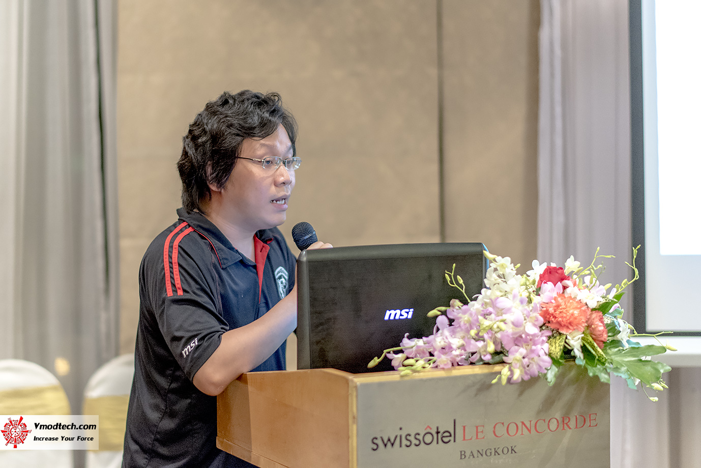 …ตามด้วยคุณ George Kao ตำแหน่ง Product Marketing Manager ก็ให้เกียรติมาเป็นผู้บรรยายผลิตภัณฑ์ทั้ง 3 รุ่น ที่มาเปิดตัวภายในงาน ได้แก่รุ่น Prestige Series คือ PE60 PX60 และ Workstation Series คือ WT72 ซึ่งการบรรยายประกอบไปด้วยรายละเอียด Feature ใหม่ทั้งหมดมาในรุ่น Prestige ที่มีคุณสมบัติแตกต่างจากรุ่นก่อนๆหรือ Series อื่นๆที่เคยมา สร้างความสนใจให้กับสื่อมีเดียเป็นอย่างมาก ไม่ว่าจะเป็น Feature True Color, Color Profile Sharing หรือ เทคโนโลยี Nahimic Sound รวมถึง Feature อื่นๆในรุ่น P series และ Workstation