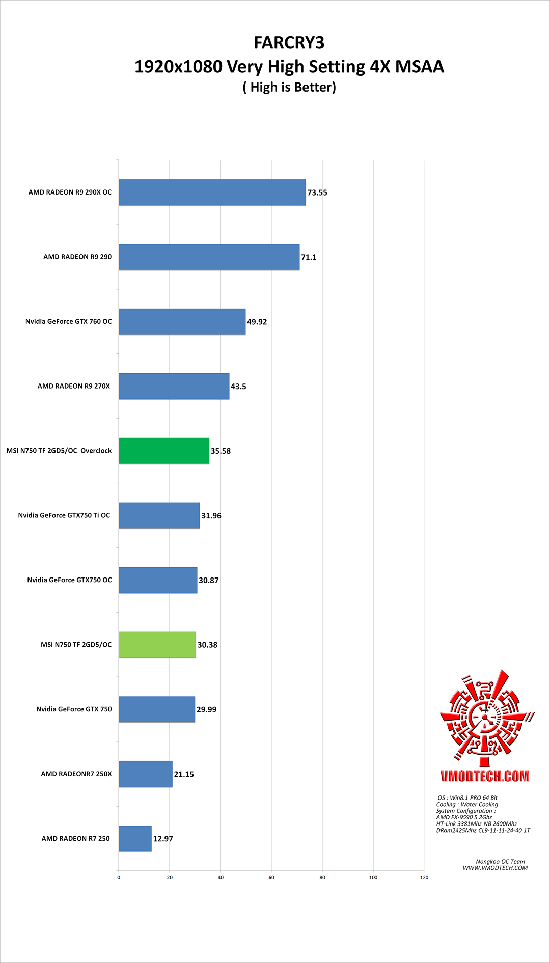 FARCRY3 ความละเอียด 1920X108 Very High MSAA 4X เฟรมเรตอยู่ที่ 35ฟรมเรตถือว่าใช้ได้ดีครับ ใช้งานจริงควรลดรายละเอียดกราฟฟิกลงมาอีกครับลื่นยิ่งกว่านี้แน่นอน