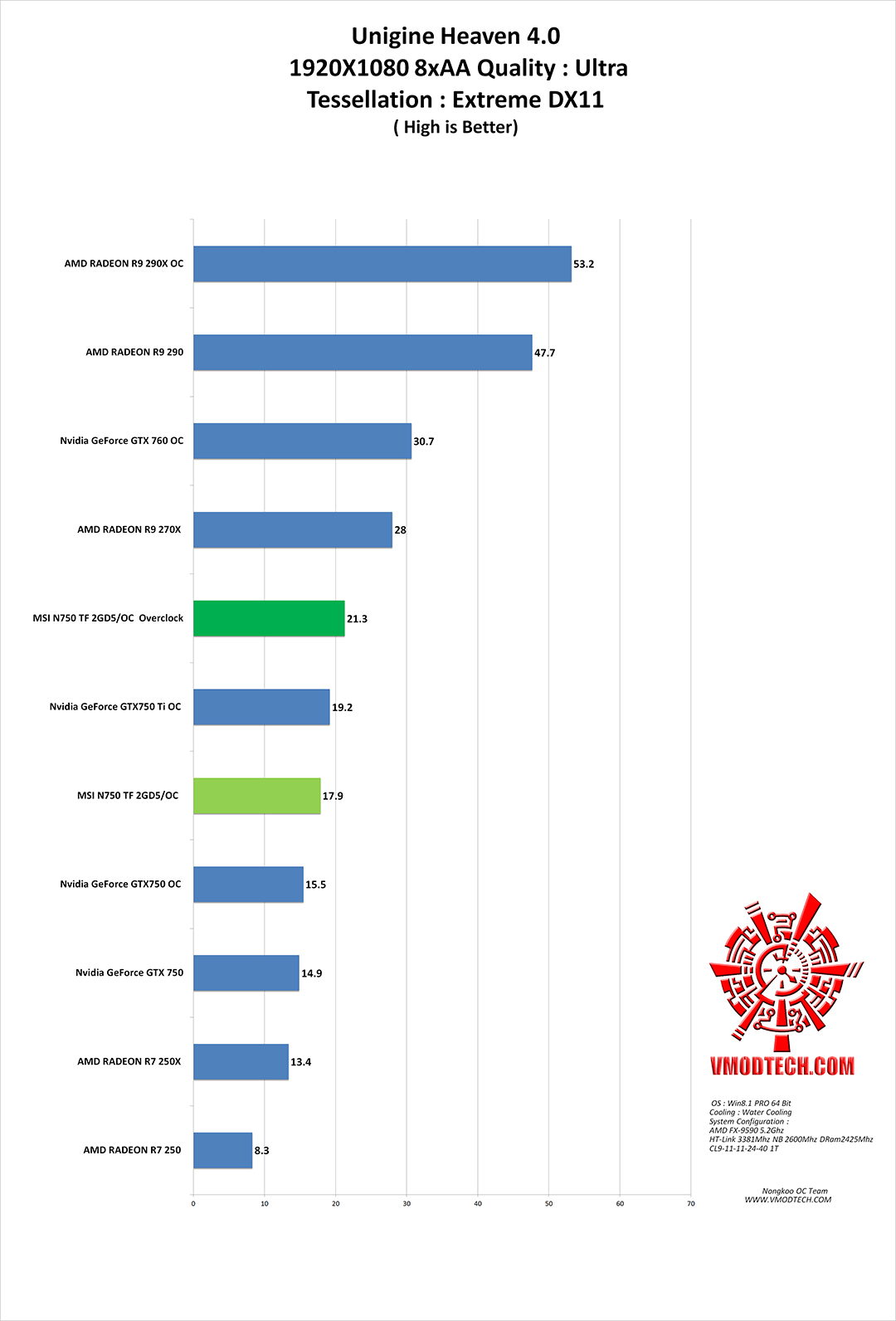 Unigine Heaven 4.0 โอเวอร์คล๊อกแล้วอยู่ที่ 21.3เฟรมเรต