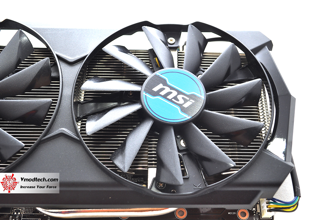 ตัวการ์ดนั้นสีดำสนิทครับ มีสีฟ้าตรงพัดลมโลโก้ MSI สวยงาม