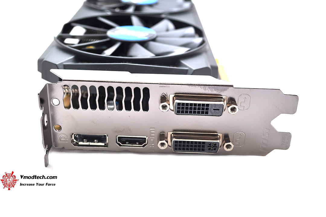 อินเตอร์เฟสด้านหลังประกอบด้วย 2 (Dual-link DVI-I x 1, Dual-link DVI-D x 1) , 1X HDMI Connectors (version 1.4a) , 1X DisplayPort (version 1.2)