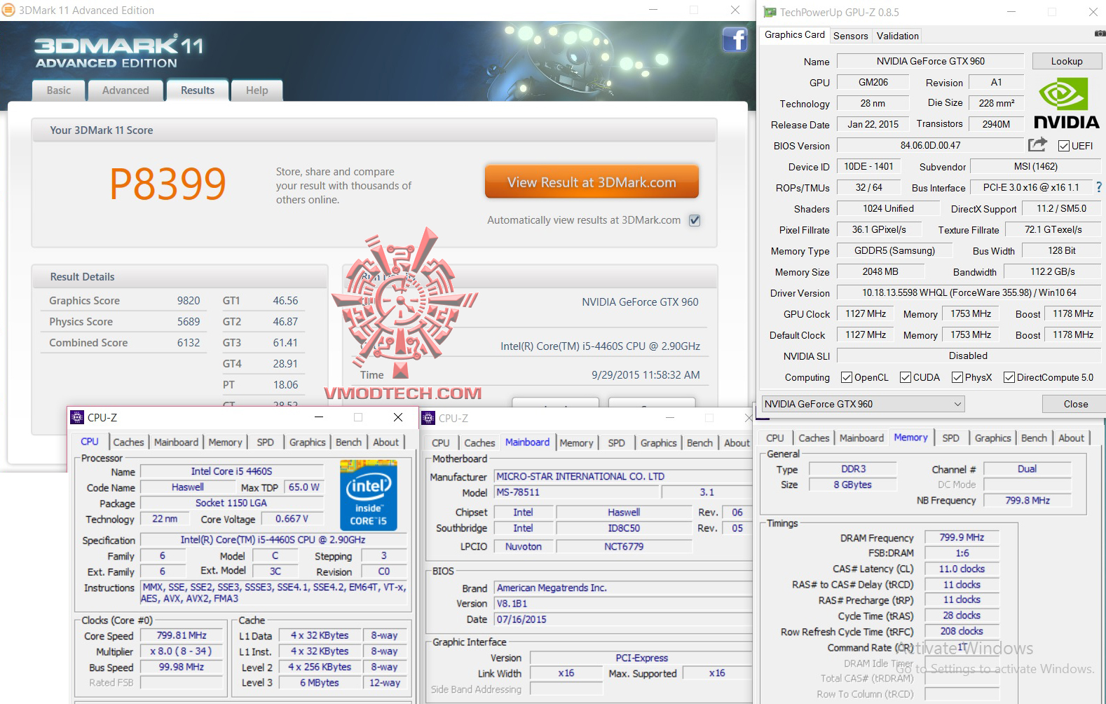 3Dmark11 กดกันแบบโหดๆอยู่ที่ 8399คะแนน แรงเยี่ยมเลยครับ เมื่อทำงานกับ GTX 960