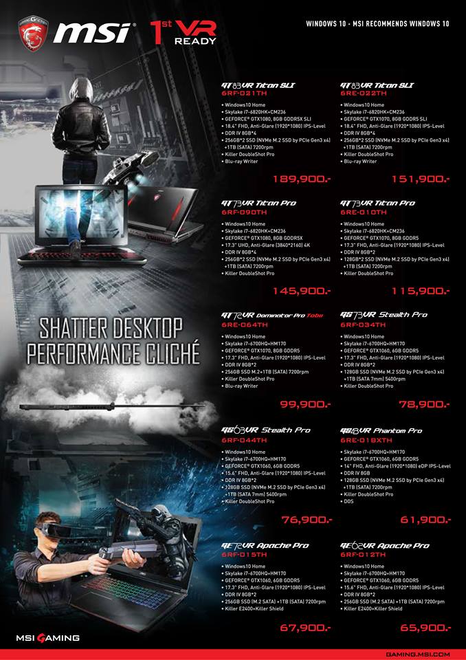 ราคาของผลิตภัณฑ์ MSI Notebook ทุกรุ่นที่มีจำหน่ายในประเทศไทยในคราวนี้นะครับ
