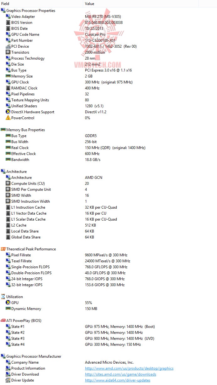 MSI Radeon R9 270 OC Twin FROZR Gaming Default from GPUZ