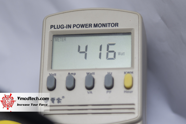 ความร้อนหลังจากโอเวอร์คล๊อกและเพิ่มไฟนั้นอยู่ที่ 67 องศาซึ่งผมปรับรอบพัดลมไว้ 100% กินไฟจากเต้ารับประมาณ 416 วัตต์โดยเฉลี่ย