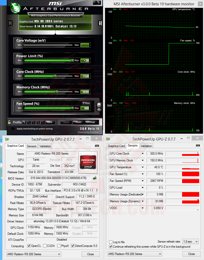 เมื่อโอเวอร์คล็อกไปที่ 1150/1600 MHz อุณหภูมิเริ่มต้น 40 องศา พัดลม 100%