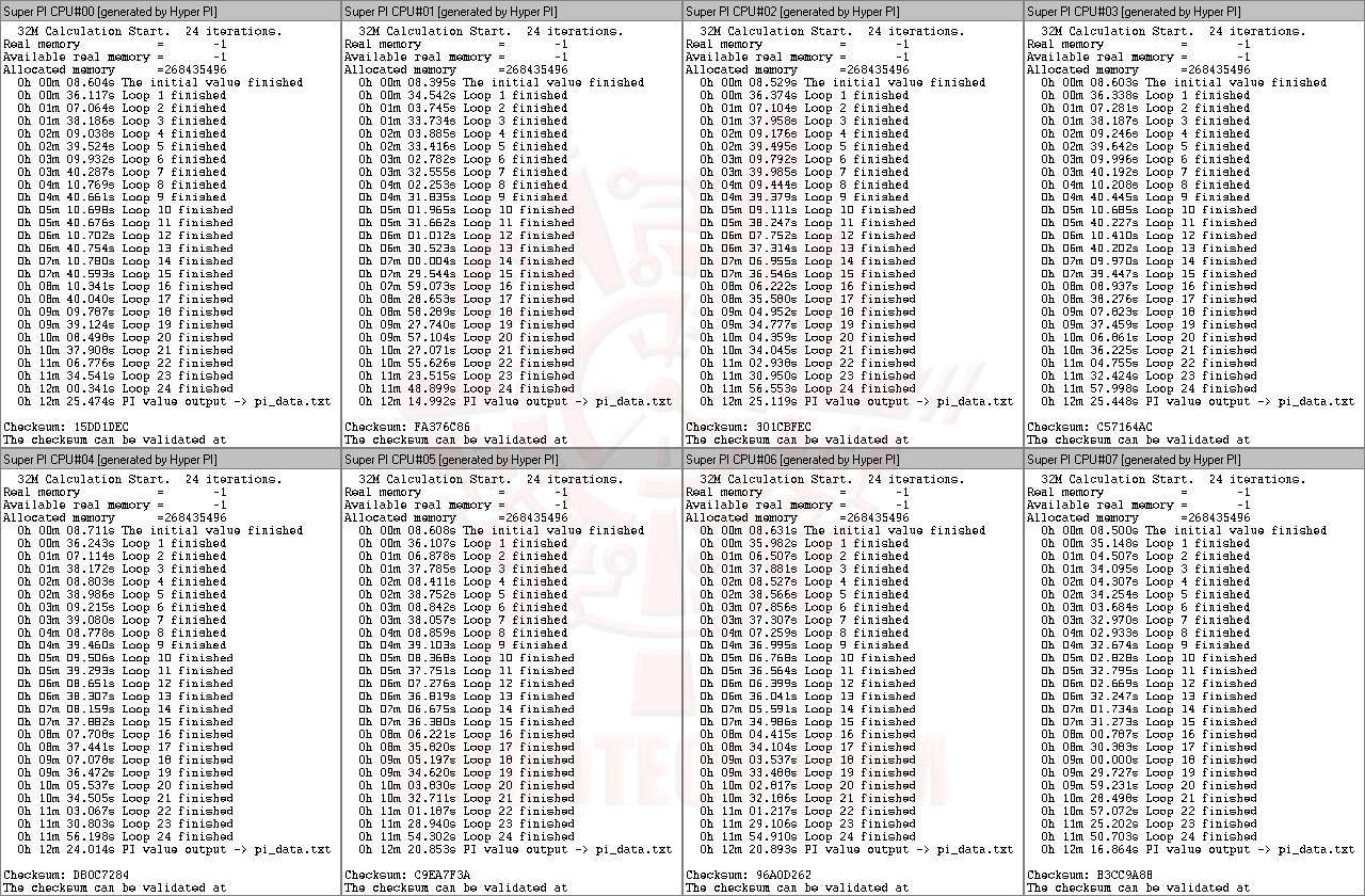 SuperPI 1M 1Thread, 32M 1Thread , 32M 8Threads