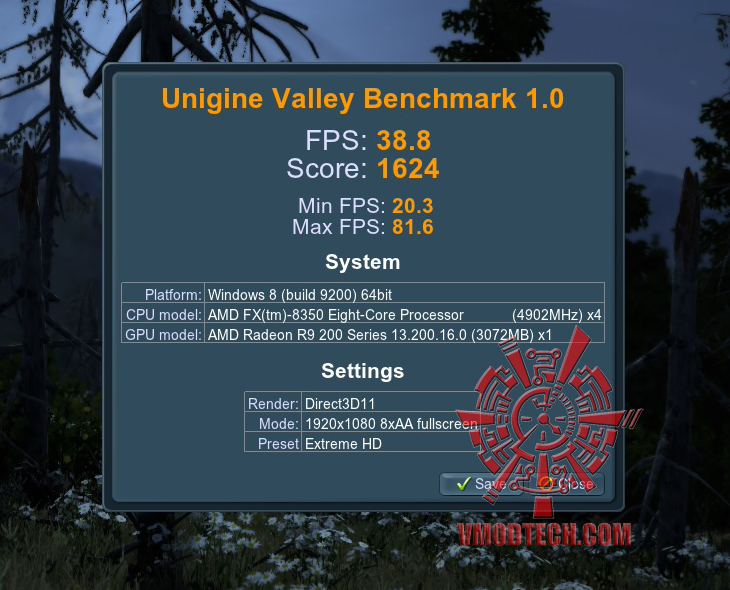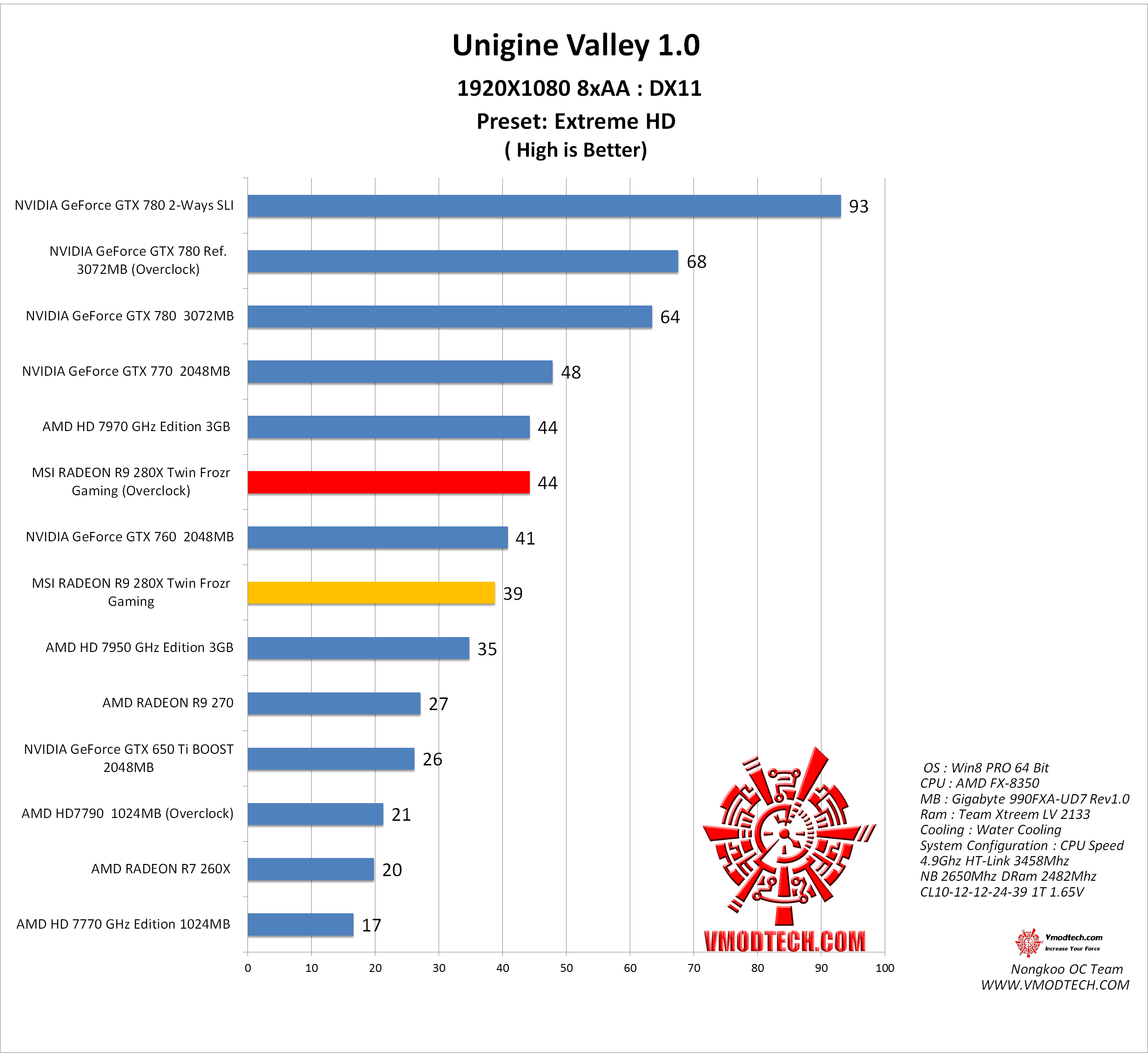 Unigine Valley 1.0 แเฟรมเรตอยู่ที่ 44เฟรมเรต