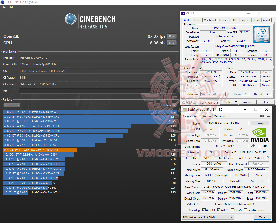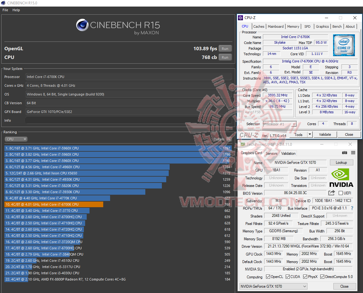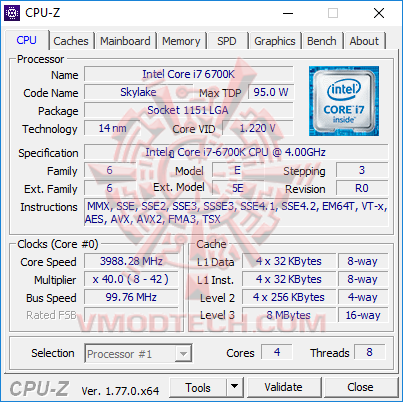 - Intel® Core™ i7 6700K, 3,600 MHz 4/8 Core/Thread