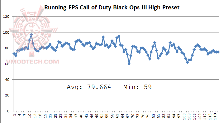 Black OPS III ได้เฟรมเรทเฉลี่ย 80 ต่ำสุดที่ 59 ลื่นมากครับ มันกินแรมระบบไป 9.5GB แรมการ์ดใบละเกือบๆ 6GB สุดๆละ