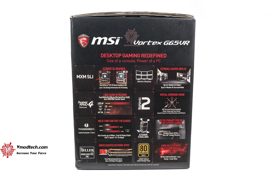 นี่คือตัวแพกเกจจิ้งของ MSI Vortex G65VR 6RE SLI ครับ ตัวกล่องไม่ใหญ่มากครับ รายละเอียดคุณสมบัติต่างๆนั้นมีอธิบายไว้ที่ด้านหลังกล่องให้พิจารณากัน