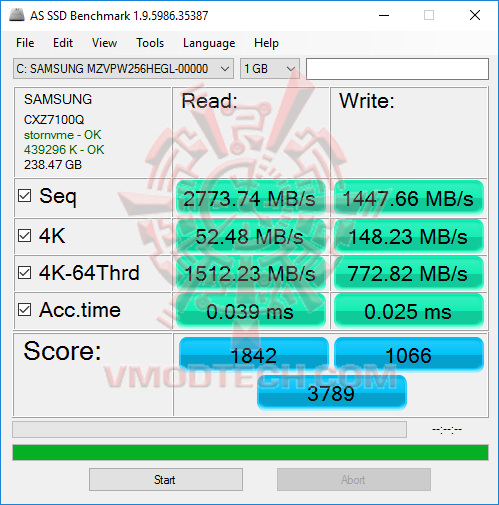 ผลการทดสอบจาก CDM ก็แสดงความแรงของ SSD ที่ถูกติดตั้งมาเช่นกัน