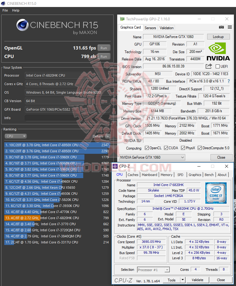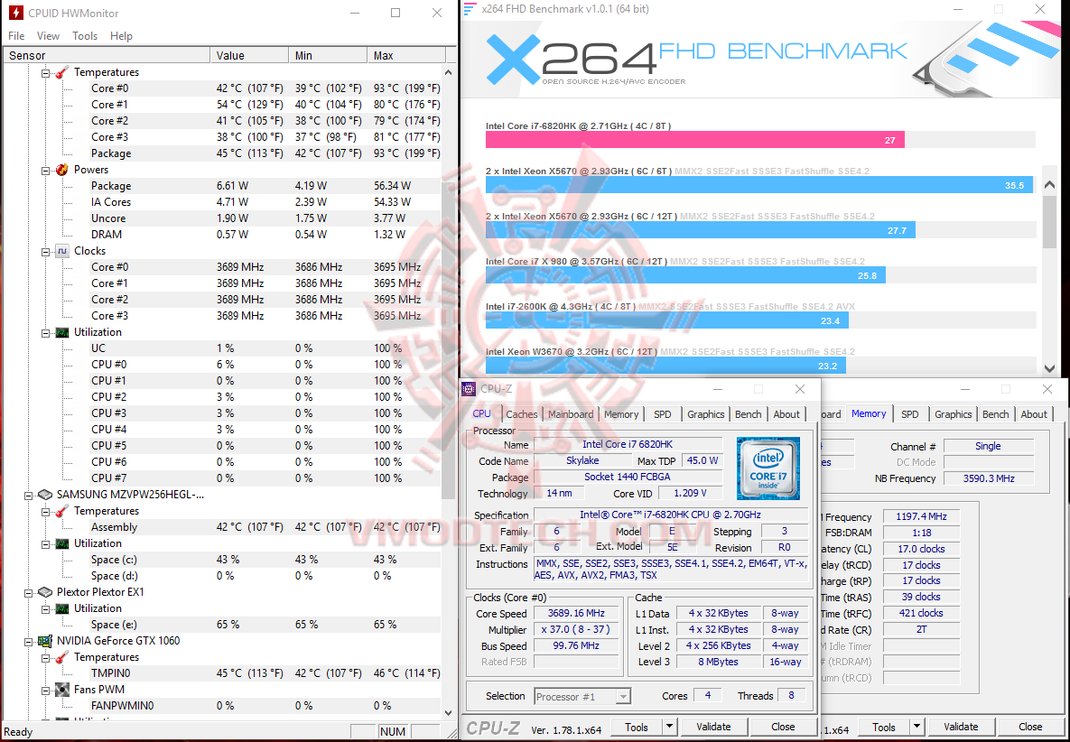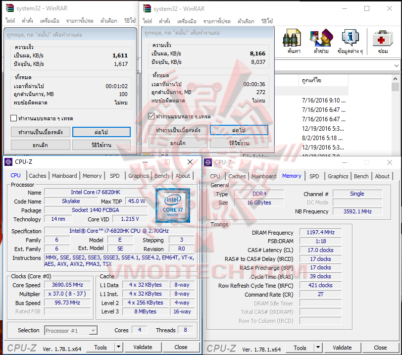 CPU ที่ติดตั้งมานั้นเป็น Intel Skylake Core i7 6820K ที่มี L3 ขนาด 8 เมกกะไบท์ มันเป็น cpu แบบ 4 คอร์ 8 เธรด แรงเพียงพอเลยครับ