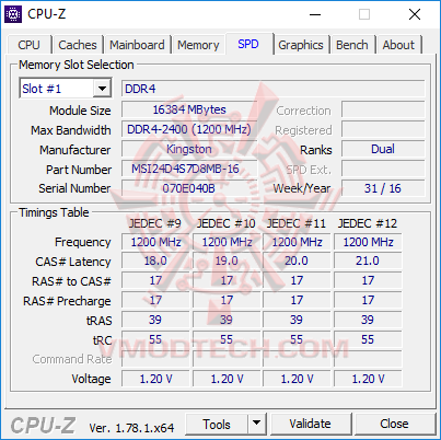 แรมที่ติดตั้งมาในวันนี้นั้นมีขนาด 16 กิ๊กกะไบท์แถวเดียวทำงานแบบ Single Channel บัส 2400 MHz