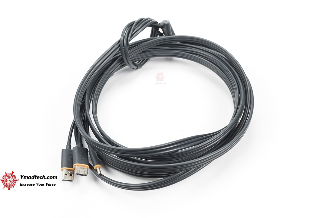 ด้านบนนี้เป็นสายเชื่อมต่อจากแว่นไปยังกล่องควบคุม ในชุดนั้นจะมีสายอยู่สองความยาวคือสายที่เห็นด้านบนกับสายสั้นที่ออกแบบมาให้มีความยาวที่เหมาะสมในการใช้งานแว่น VR กับ MSI VR ONE เมื่อสะพายแบบแบ๊คแพก