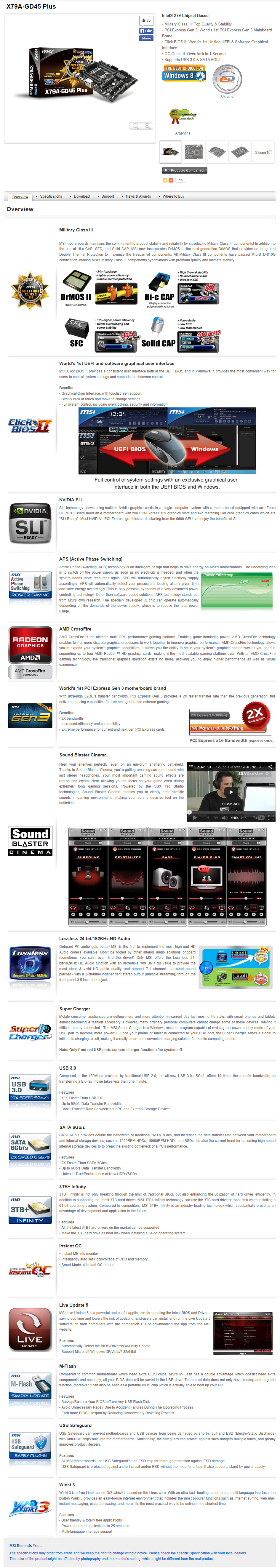 MSI X79A-GD45 Plus.แม้ว่าจะเป็น Motherboard รุ่นเล็กๆแต่ทว่าการทำงานและการรองรับการทำงานในรูปแบบปกตินั้นไม่ได้น้อยหน้ารุ่นพี่แต่อย่างใด อุปกรณ์ในภาคจ่ายไฟนั้นก็ยังคงเป็นเกรดทหารที่สามารถยืนยันความทนทานภายใต้สภาวะการทำงานบ้านเราได้เป็นอย่างดีครับ