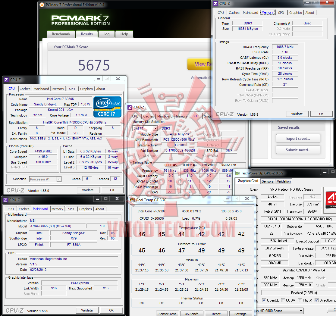 เรียบร้อยไปอีกบอร์ดครับสำหรับ MSI X79A-GD65 (8D) ที่วันนี้รีวิวร่วมกับคู่หูอย่าง Thermaltake Frio Advanced วิ่งกันแบบสบายๆจำลองการใช้งานแบบธรรมดาสามัญให้ได้ชมกัน ไม่เค้นไม่เครียดเล่นสบายๆกันเลยครับสำหรับเซตนี้ สำหรับ GD65 วันนี้นั้น ผมได้ทำการ Flash Bios เป็น Version ล่าสุดจากหน้าเว็บของ MSI เองคือ Version 1.5 ซึ่งได้ทำการแก้ไขปัญหาที่ไม่สามารถล๊อคไฟและ overclock parameter ต่างๆไว้ได้ครับ ตัวนี้ไม่มีปัญหาแล้ว ในการ Overclock ไปที่ 4.5 กิ๊กบน X79A GD65 นี้ ไม่ยากครับ โดยไฟนั้นแทบจะเป็น Auto กันเลยทีเดียว แต่ถ้าปรับละเอียดซักหน่อยก็จะสามารถไฟหลายๆตัวได้ครับ เช่น PLL วันนี้ผมใช้ 1.7, VCCSA วันนี้ผมใช้ 1.15 โดยที่สามารถเริ่มต้นจากการใช้งานปุ่ม OC GENIE ก่อนก็ได้ครับ บู๊ตเสร็จก็ลองเข้าไปดูว่ามันเซตอะไรไว้บ้าง หลังจากนั้นก็ปรับต่อยอดเอาตามความต้องการและความสามารถของ CPU Heatsink เลย