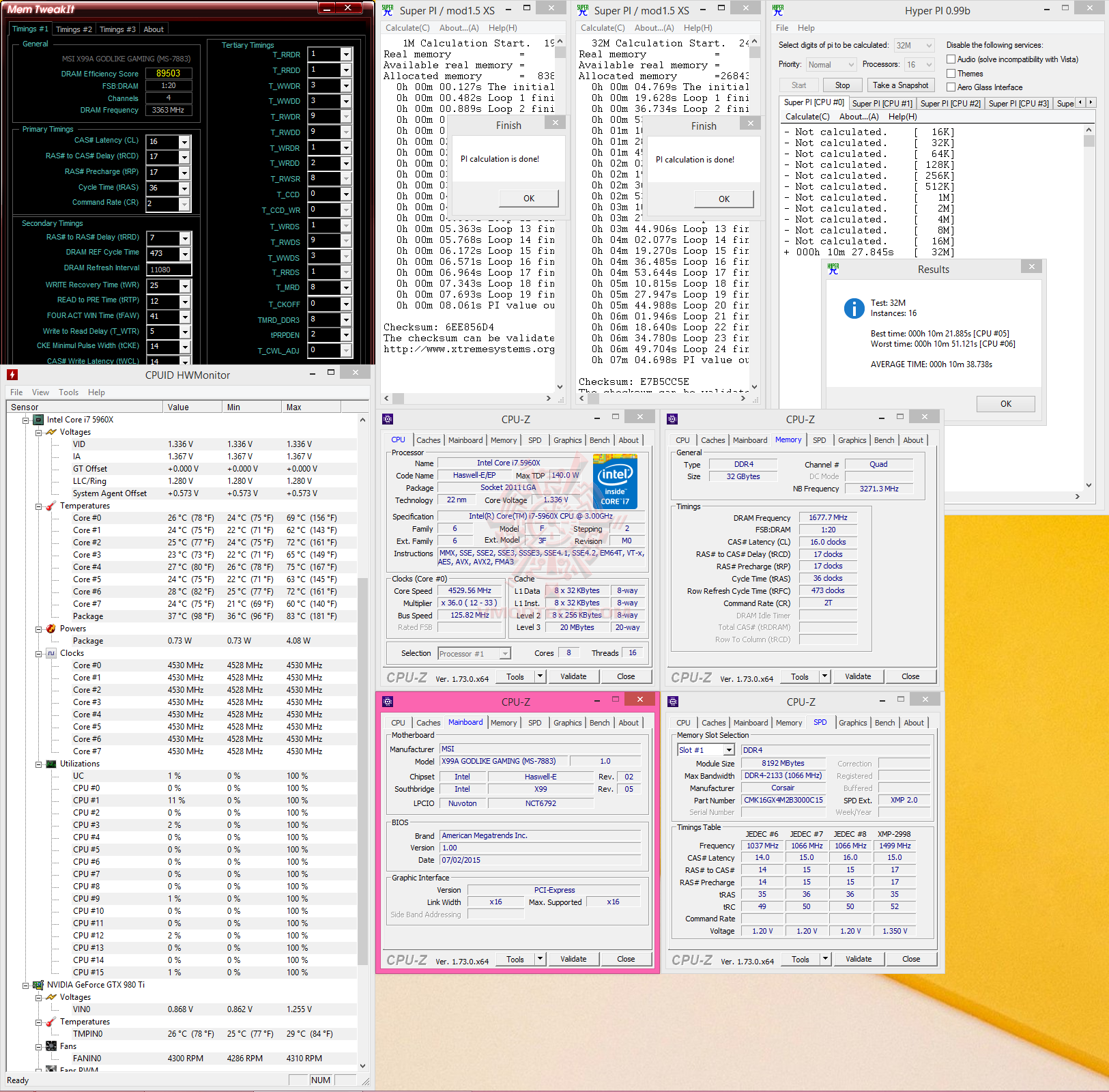 …แรงเสถียรผ่านกันแบบนิ่มๆ กับ SuperPI 32M พร้อมกัน 16 เธรด ด้วยเวลาเฉลี่ยทุกๆเธรดที่ 10.38.738 นาที แม้จะใช้ Sub-Timing หลวมๆก็ตาม แรงสุดติ่งกันจริงๆครับสำหรับ MSI X99A GODLIKE GAMING ACK