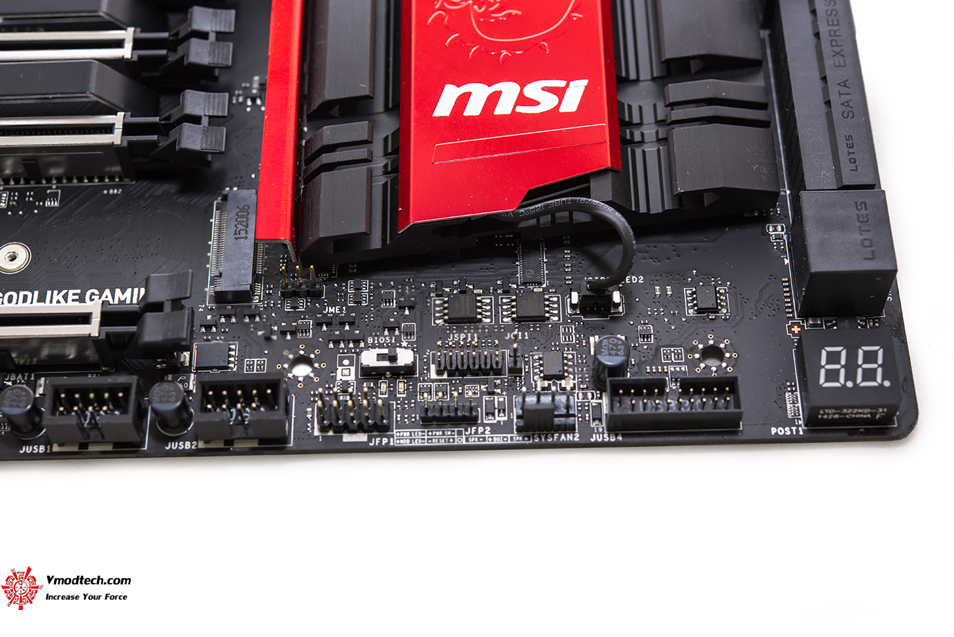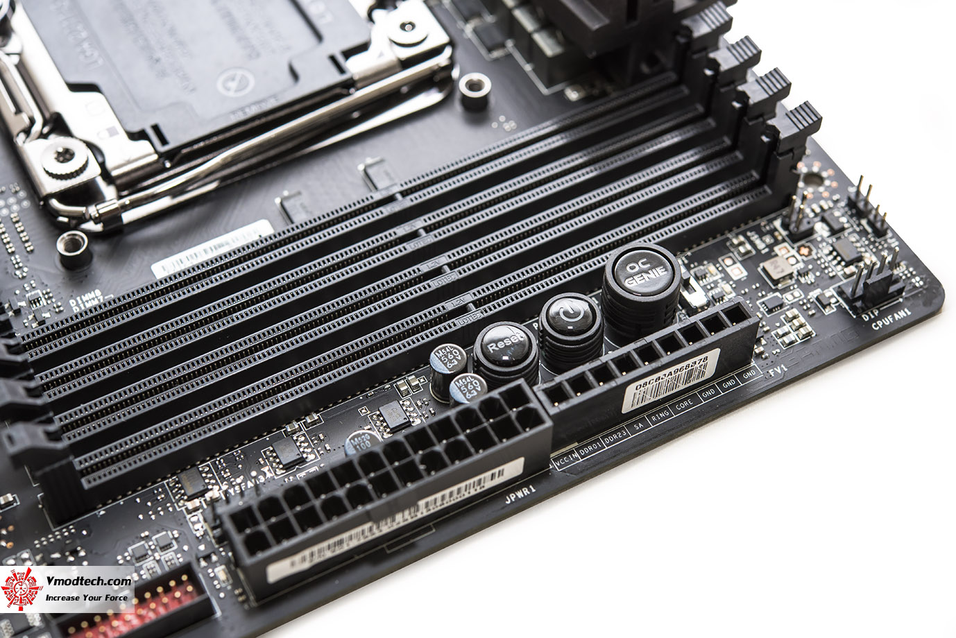 หน้าตาชัดๆของแผงควบคุมต่างๆบนตัวบอร์ดครับ โดดเด่นด้วยปุ่ม OC GENIE 4 ล่าสุดที่ช่วยให้การโอเวอร์คล็อคง่ายยิ่งขึ้นกว่าเดิม