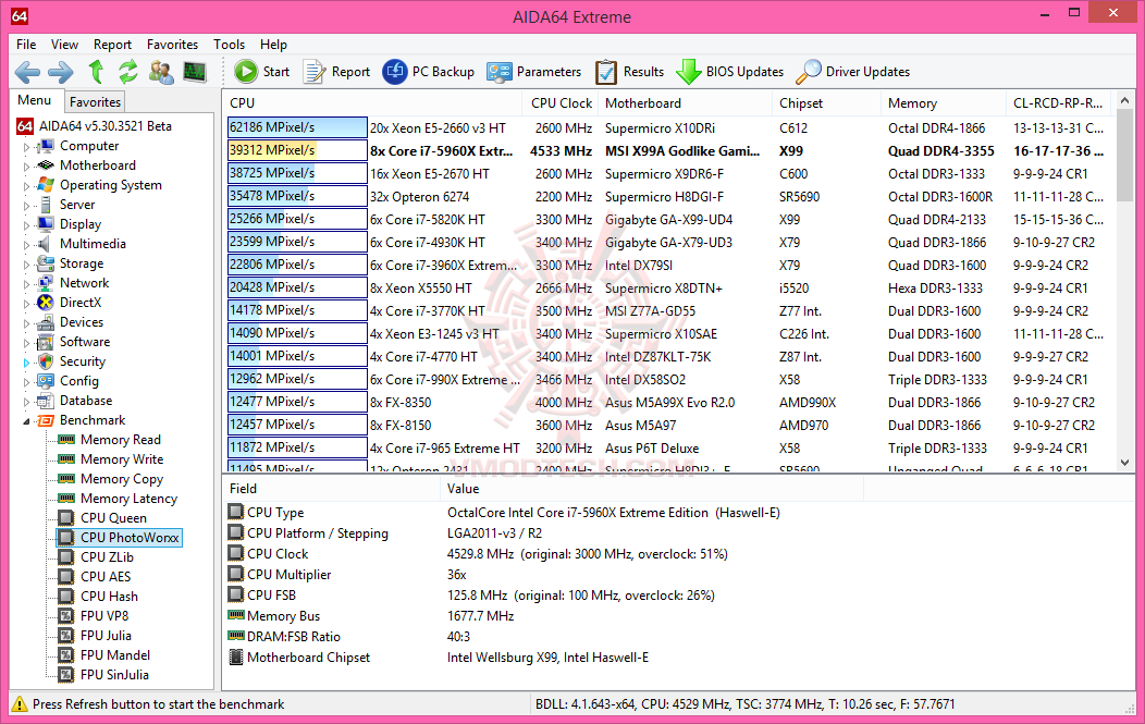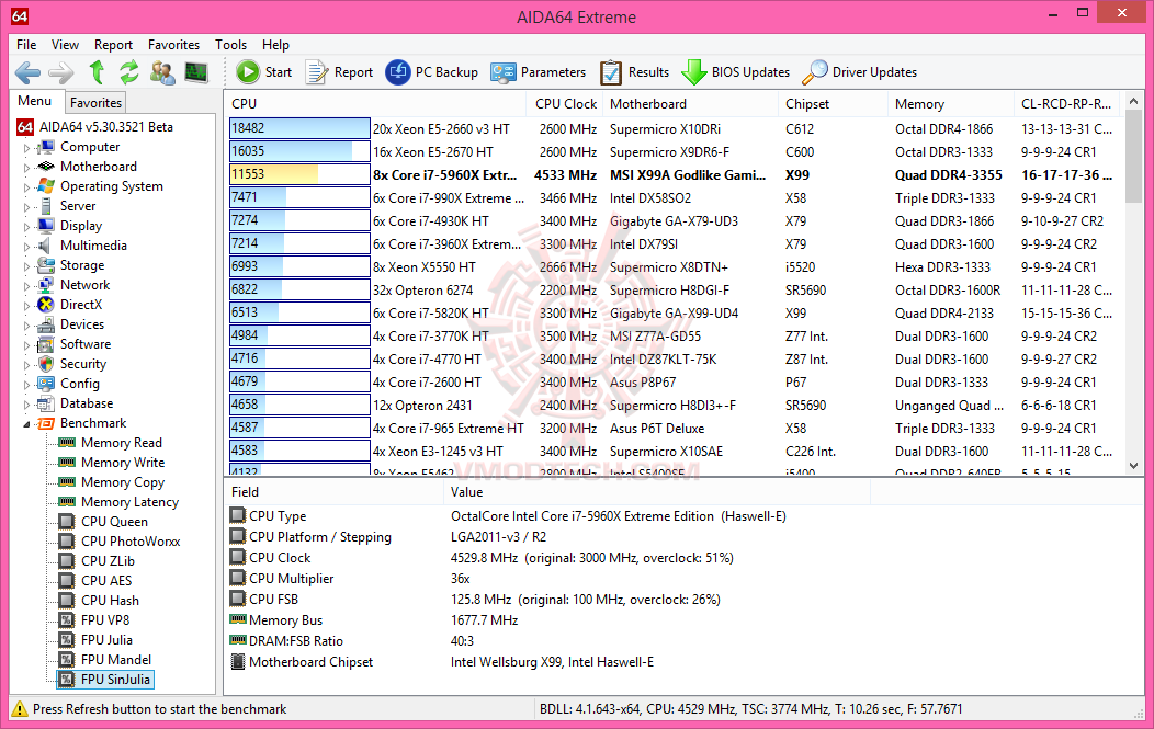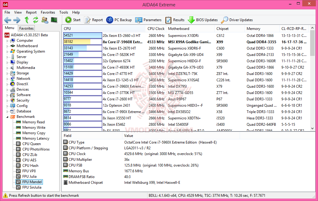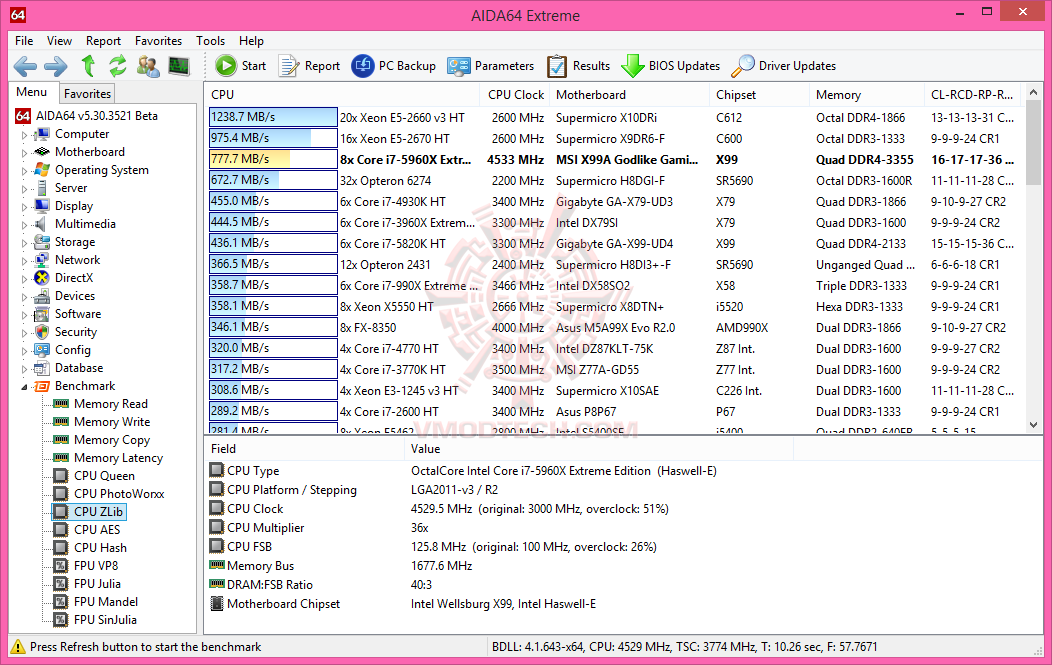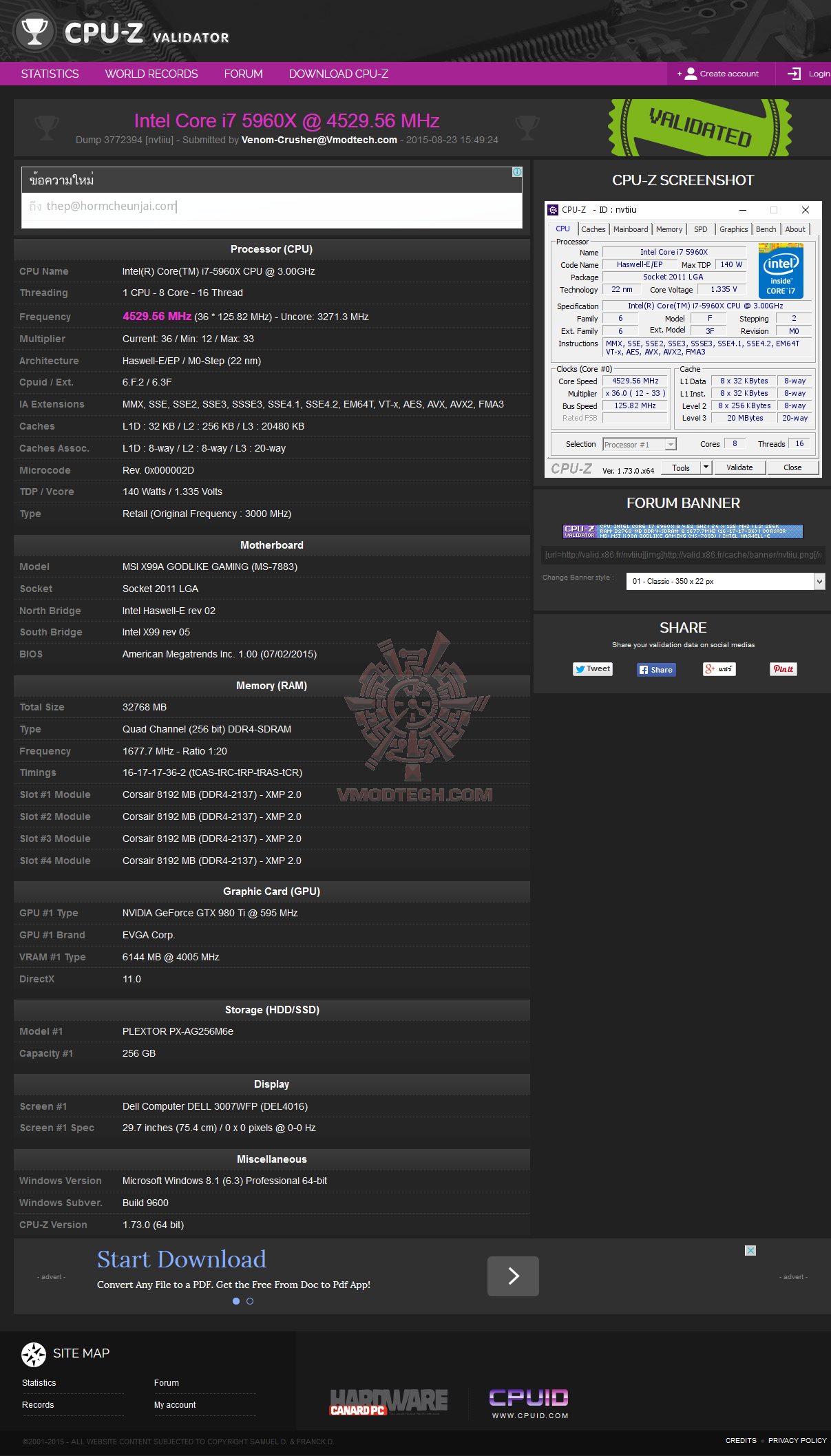 Intel® Core™ i7-5960X @ 4,529MHz Bclk 125.82MHz
