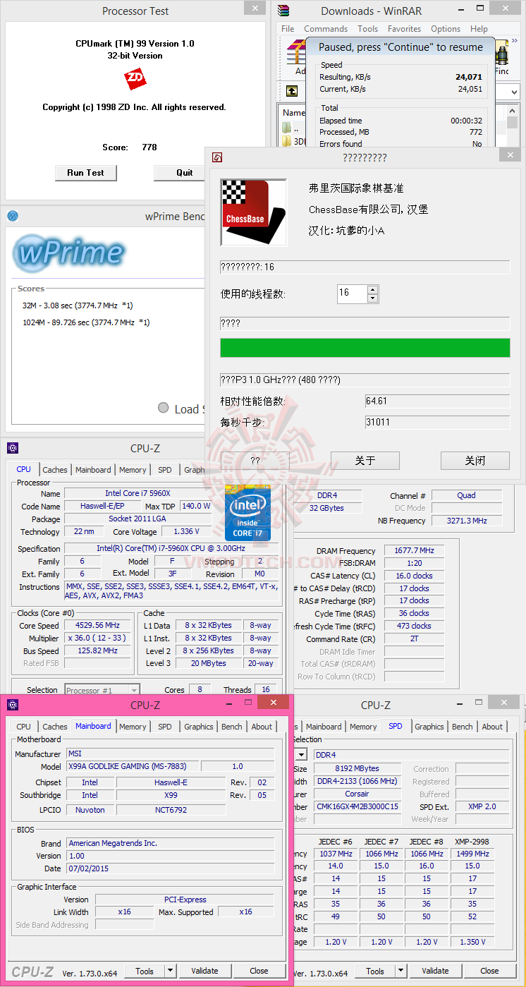 WinRAR ,wPrime2.09 , CPUMark99 & Fritz Chess Benchmark