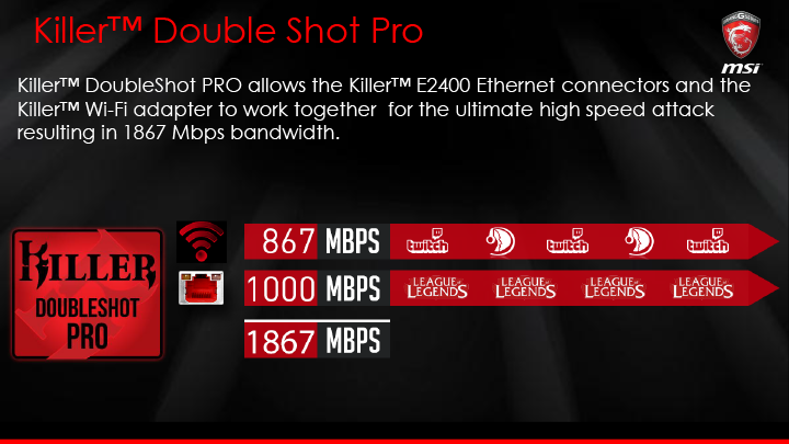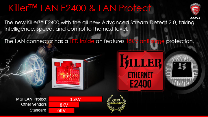 - ฟังก์ชั่นเด่นของรุ่นนนี้ก็คือ Killer™ LAN E2400 & LAN Protect ที่ข้ามรุ่นมาจาก Killer™ LAN E2200 จะแรงแค่ไหนต้องพิสูจน์ครับ และยังมี Faster USB 3.1 Gen2 แรงเป็น 2 เท่าของ USB 3.1 Gen1 วิ่งถึง 10 Gbps