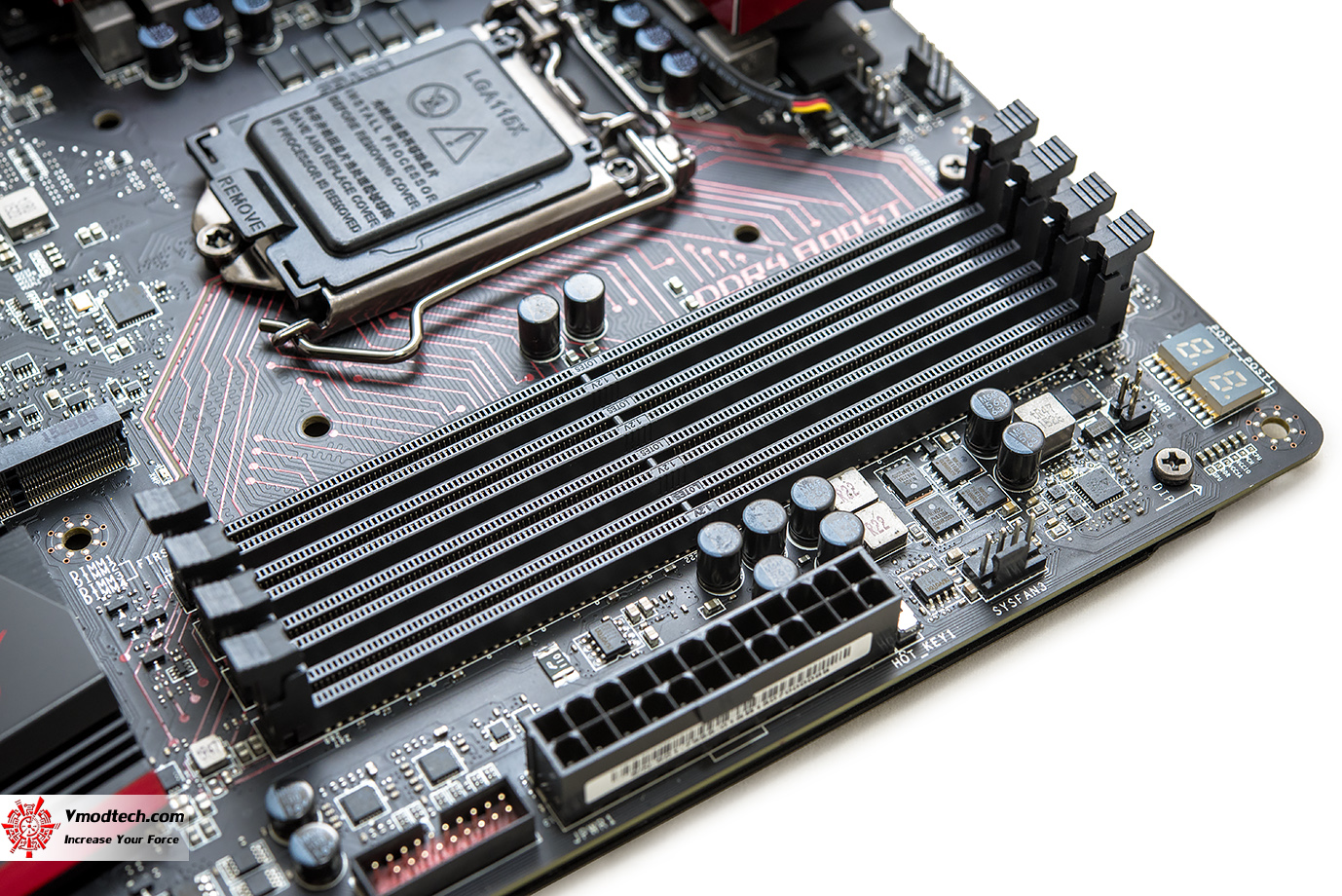 …Memory Slot แบบ Dual Channel ที่มากัน 4 Slots ได้ขนาดความจุรวมทั้งหมดสูงสุดที่ 32GB ครับ และยังมีไฟ DEBUG Display อยู่บริเวณนี้ด้วยครับ