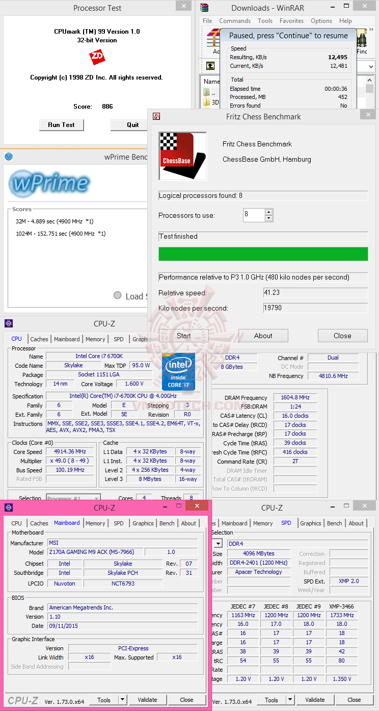 WinRAR 5.10 B4 ,wPrime2.09 , CPUMark99 & Fritz Chess Benchmark