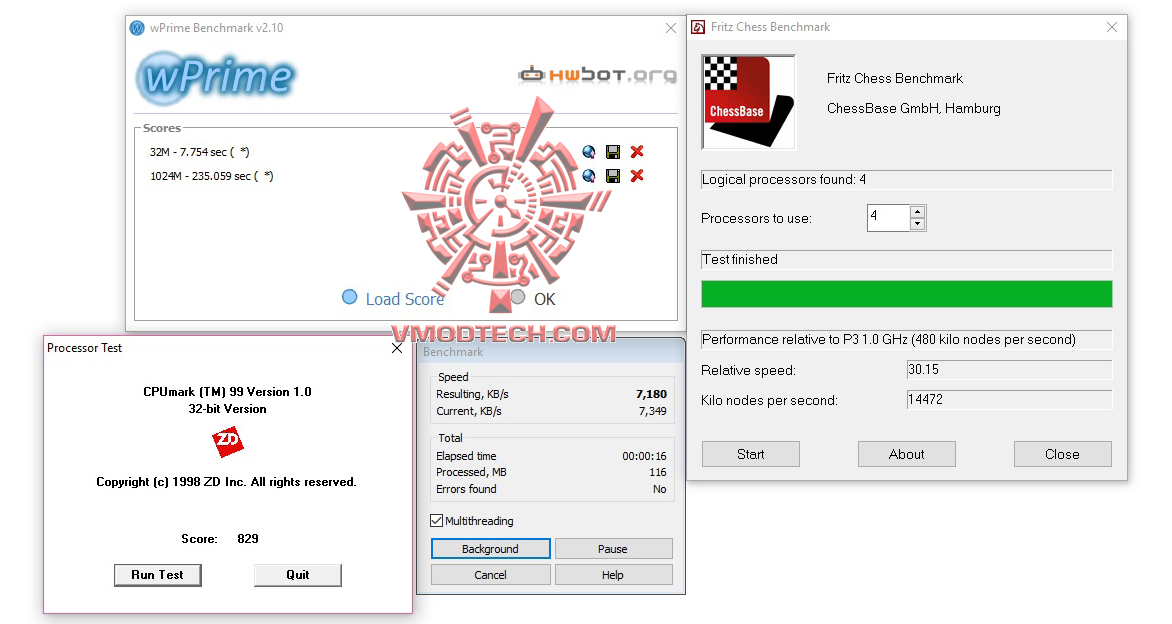 wPrime2.09 , CPUMark99 WINRAR 5.0 & Fritz Chess Benchmark