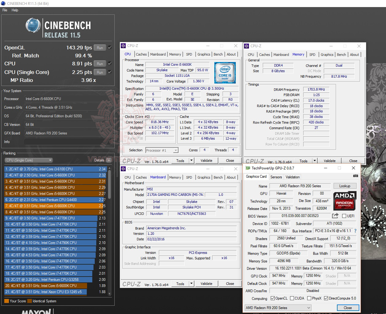 | .Motherboard | . MSI Z170A GAMING PRO CARBON |