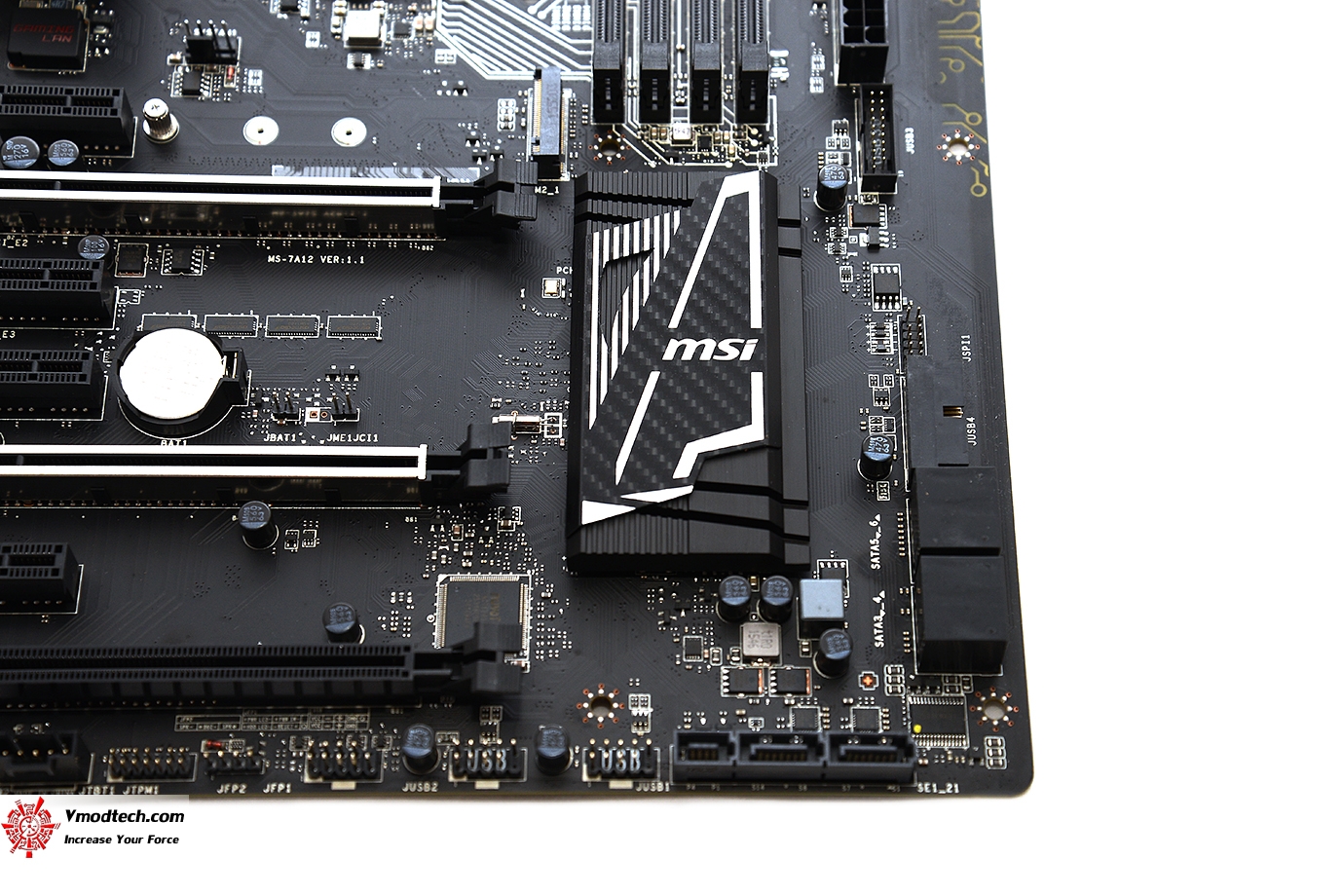 ฮีตซิงค์ชิบเซ็ต Intel® Z170 Chipset สีดำมีโลโก้ MSI ลายสีขาวพร้อมทั้งลายคาร์บอนเคฟล่าครับ ดูสวยงามตามสไตล์รถแข่งเลยครับ