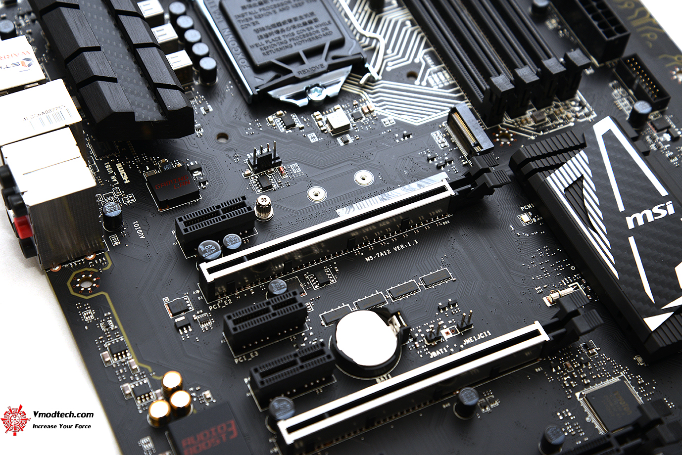 สล๊อต PCIe ที่มาพร้อมความทนทานครับเพราะทำจากโลหะทั้งสองสล๊อตป้องกันอันตรายจากสล๊อตหักหรืองอได้เป็นอย่างดีครับ ด้านบนก็เป็นชิบ GAMING LAN ควบคุมการทำงานของ LAN ให้ลื่นไหลสำหรับเกมส์เมอร์แบบเต็มๆครับ