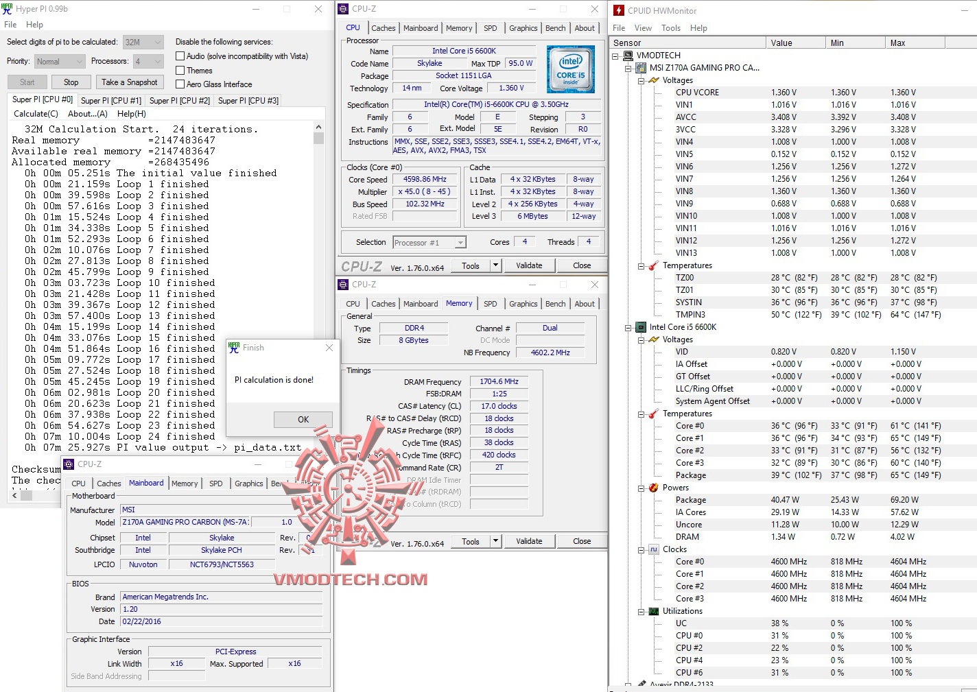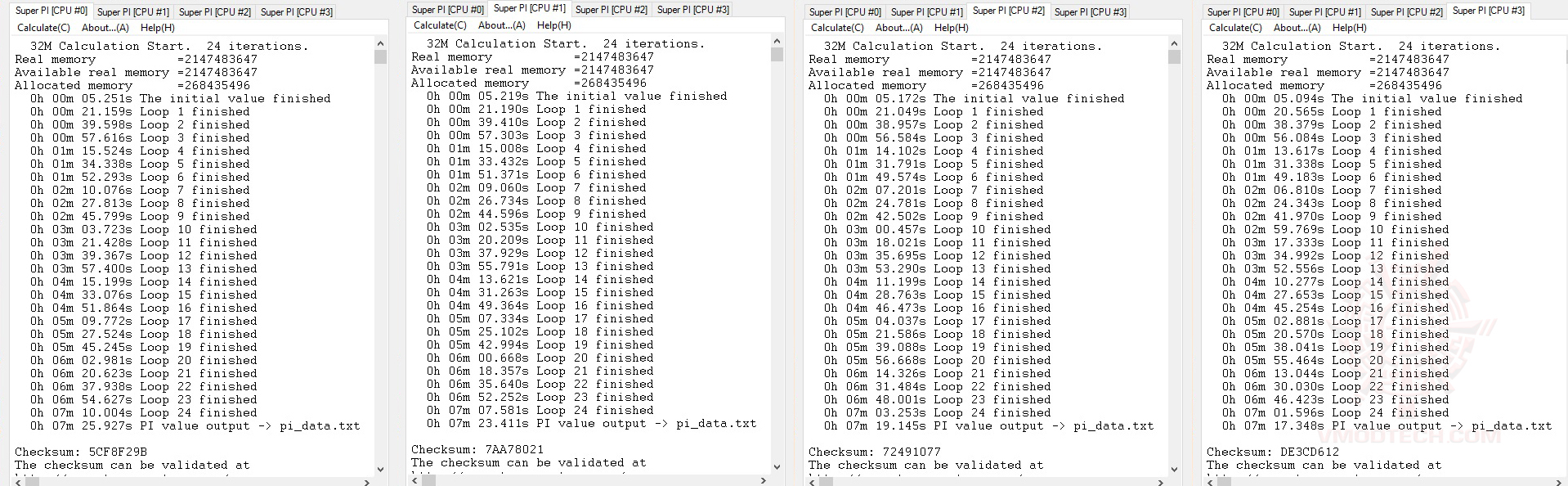 สำหรับชุด ทดสอบ SuperPI1MB จบไปที่ 7.939นาที , 32MB จบไป 6นาที 52.279 วินาที ส่วน HyperPI 32MB ก็ผ่านหมดแรงแบบนิ่งๆใช้งานกันได้จริงอย่างมีเสถียรภาพครับ เฉลี่ยราวๆ 7 นาทีกว่าๆ ทั้ง 4เทรด ทำได้ดีมากครับ