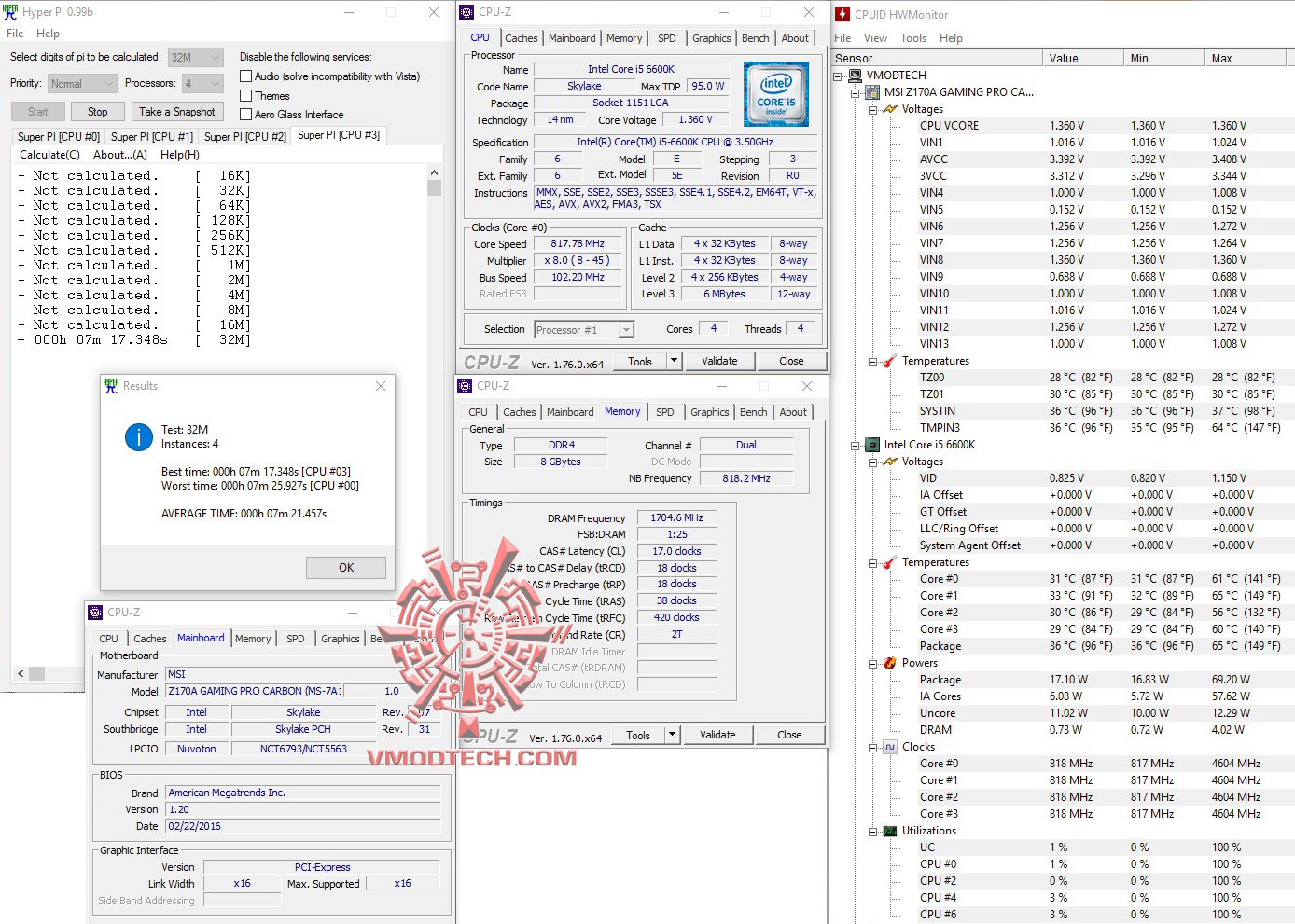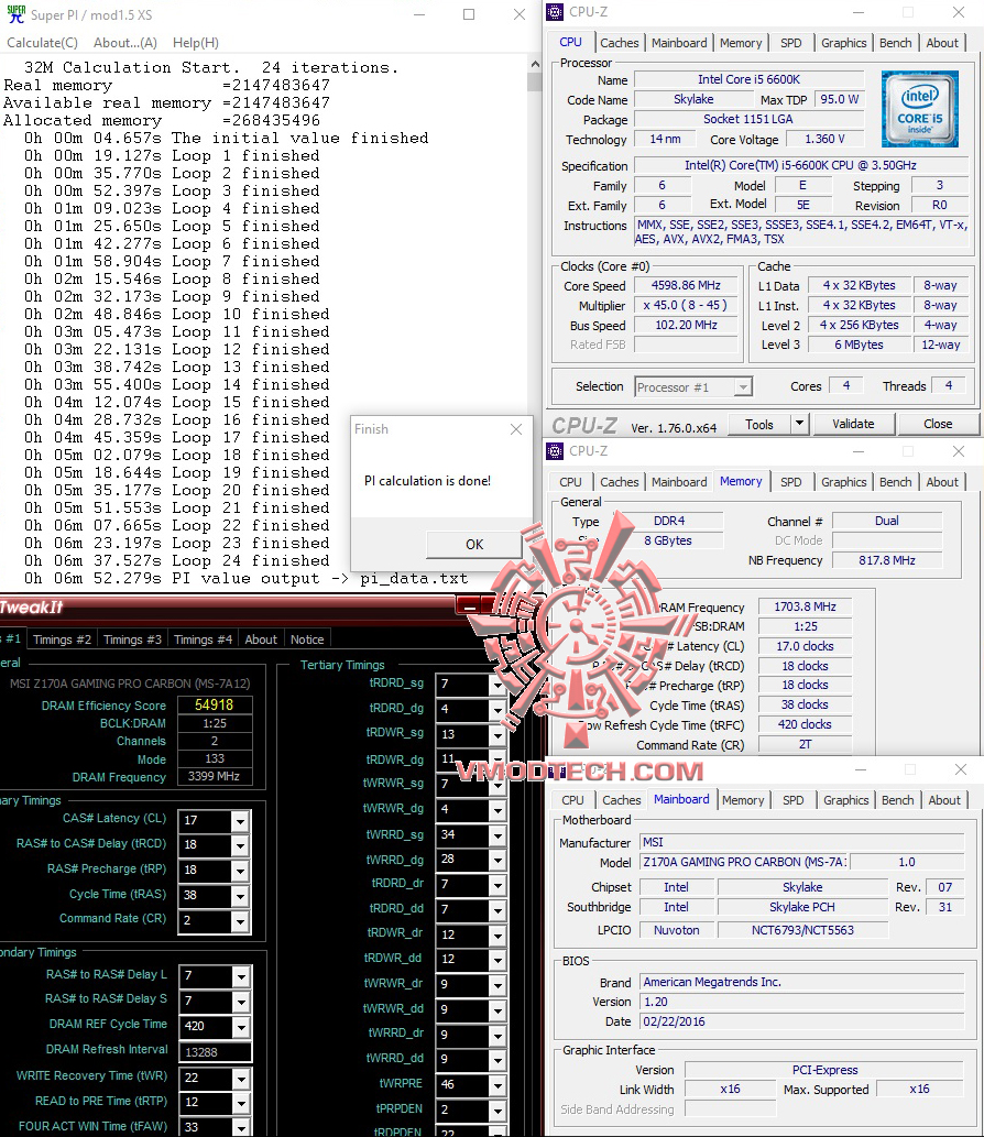 ก็มาถึงบทสรุปครับกับการทดสอบเมนบอร์ด MSI Z170A GAMING PRO CARBON ที่วันนี้ถือว่าทำผลงานได้ดีเลยครับกับการโอเวอร์คล๊อกใช้งานกันแบบสบายๆที่ความเร็ว 4.6Ghz Uncore 4.6Ghz บัสแรม 3400Mhz อย่างมีสเถียรภาพตลอดการทดสอบถือได้ว่าโอเคครับกับชุดเฟสไฟแบบ Titanium Choke (TI) ซึ่งส่วนใหญ่แล้วเราจะเห็นแต่แบบ SFC ของทาง MSI ครับ มาดูในส่วนของดีไซน์นั้นมองแต่ภายนอกอาจดูเรียบๆแต่ถ้าสังเกตุดีๆแล้วนั้นฮีตซิงค์ทั้งหมดจะมีลายคาร์บอนเคฟล่าซึ่ง MSI Z170A GAMING PRO CARBON นำเอาเทคโนโลยีนี้มาใส่ในเมนบอร์ดเน้นความสวยงามแบบรถแข่งกันเลยทีเดียวครับยิ่งถ้าตอนทำงานแล้วนั้นจะมีไฟ LED แบบ RGB อยู่ทั้งด้านหน้าและด้านหลังอย่างสวยงามอลังการกันเลยทีเดียวครับ ซึ่งท่านสามารถปรับแต่งสีสรรได้ตามความต้องการกันเลยทีเดียวครับ เรียกได้ว่าจัดเต็มเอาใจสายม๊อดที่เน้นสีสรร LED แบบอลังการพร้อมทั้งมีฟีเจอร์แบบจัดเต็มสำหรับเกมส์เมอร์ให้แบบครบครันไม่ว่าจะเป็น GAMING LAN , Turbo M.2 32Gb/s , USB 3.1 Gen2 , Mystic Light , Audio Boost 3 , Game Boost ให้กันมาแบบครบๆเลยครับ ส่วนฟีเจอร์ที่เน้นความปลอดภัยก็มีมาให้ด้วยระบบ Overvoltage Protection ที่ช่วยป้องกันอันตรายจากการโอเวอร์คล๊อกครับ ถือได้ว่าเป็นเมนบอร์ดที่ครบเครื่องทั้งประสิทธิภาพการทำงานจัดเต็มด้วยฟีเจอร์ที่ครบครันพร้อมทั้งดีไซน์การออกแบบที่สวยงามถูกใจคอเกมส์เมอร์แน่นอนครับกับดีไซน์ที่สวยงามมาพร้อมสีสรรของไฟ LED แบบ RGB พร้อมทั้งยัดฟีเจอร์เกมส์มิ่งมาแบบครบครันใครกำลังมองหาเมนบอร์ดที่สวยงามโอเวอร์คล๊อกได้สบายๆ MSI Z170A GAMING PRO CARBON รุ่นนี้น่าจะเป็นตัวเลือกที่ถูกใจท่านแน่นอนครับ สำหรับราคาวางจำหน่ายอยู่ที่ 6XXXบาทครับ แล้วพบกันใหม่กับรีวิวอุปกรณ์ใหม่ๆที่อัพเดทให้ได้รับชมกันทุกวันที่ Vmodtech.com สวัสดีครับ