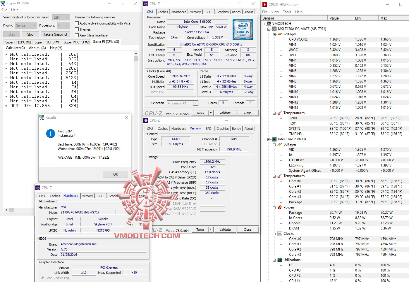 สำหรับชุด ทดสอบ SuperPI1MB จบไปที่ 7.97วินาที , 32MB จบไป 6นาที 56.519วินาที ส่วน HyperPI 32MB ก็ผ่านหมดแรงแบบนิ่งๆใช้งานกันได้จริงอย่างมีเสถียรภาพครับ เฉลี่ยราวๆ 7นาทีกว่าๆ ทั้ง 4เทรด